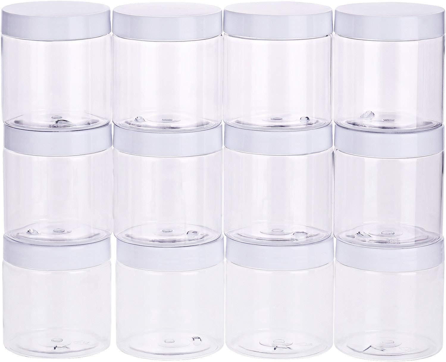 Chuangchou Empty Clear Plastic Storage Favor Jars Wide-mouth Plastic Containers with White Lids (12 Pack) for Beauty Products, DIY Making or Others (8 oz)