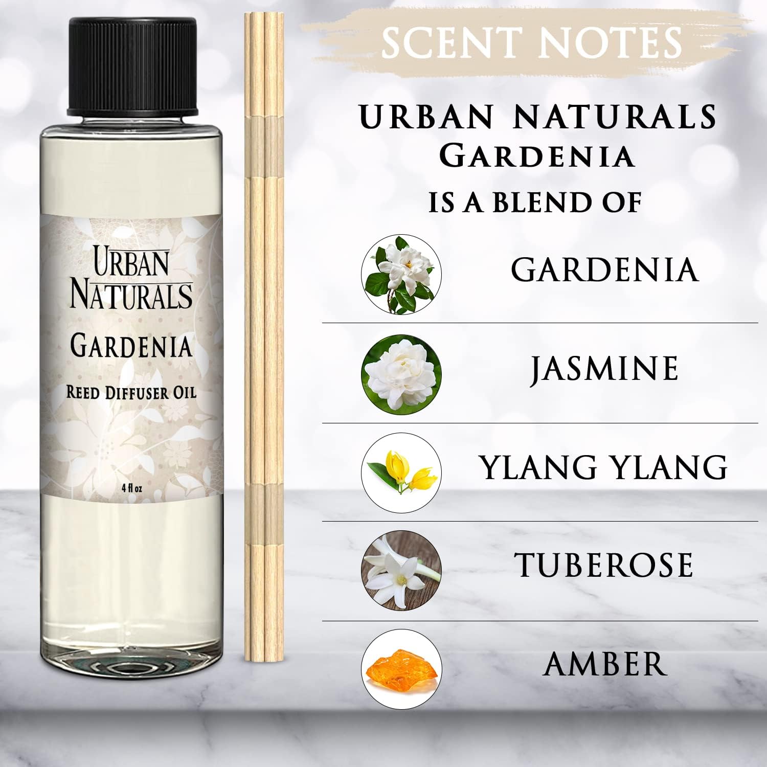 Urban Naturals Gardenia Scented Oil Reed Diffuser Refill | Includes a Free Set of Reed Sticks! Jasmine, Ylang Ylang, Tuberose & Amber Notes | 4 oz