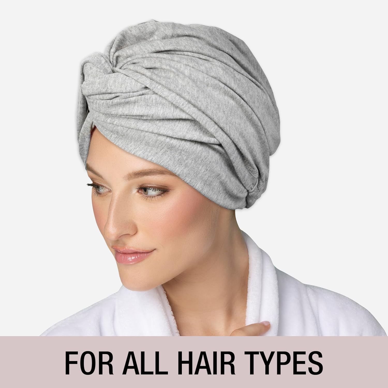 CONAIR Cotton Twist & Wrap Hair Towel, Fast Drying Ultra-Absorbent Hair Plop for All Types and Lengths, Turban-Style Cotton Towel Helps Maintain Natural Curl Style, Gray