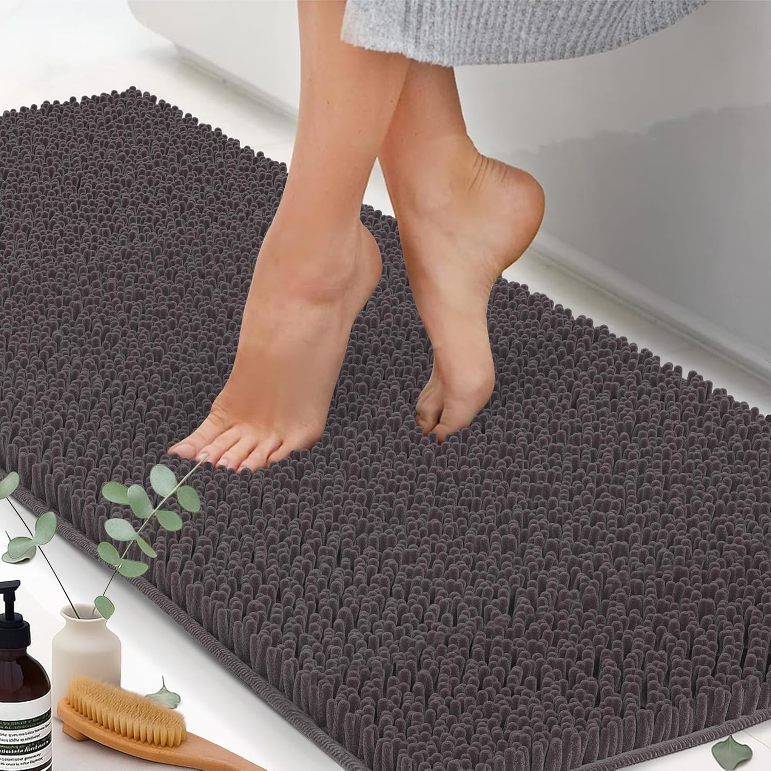 Chenille Bath Mats, Plush Absorbent Bath Mats Quick Dry, Soft & Machine Washable, Non Slip Carpet For Bathroom, Thick Bathroom Rugs, Shower Restroom Rug Mat, Alfombras De Baño, Bathrugs Matts, 59"x21"