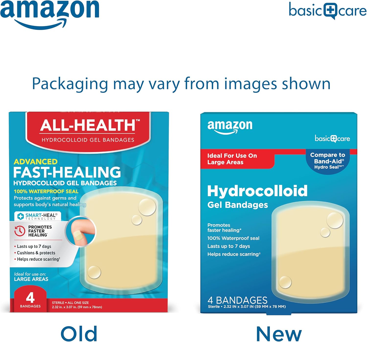 Amazon Basic Care Advanced Fast Healing Hydrocolloid Gel Bandages, Large Wound Dressing, 4 ct