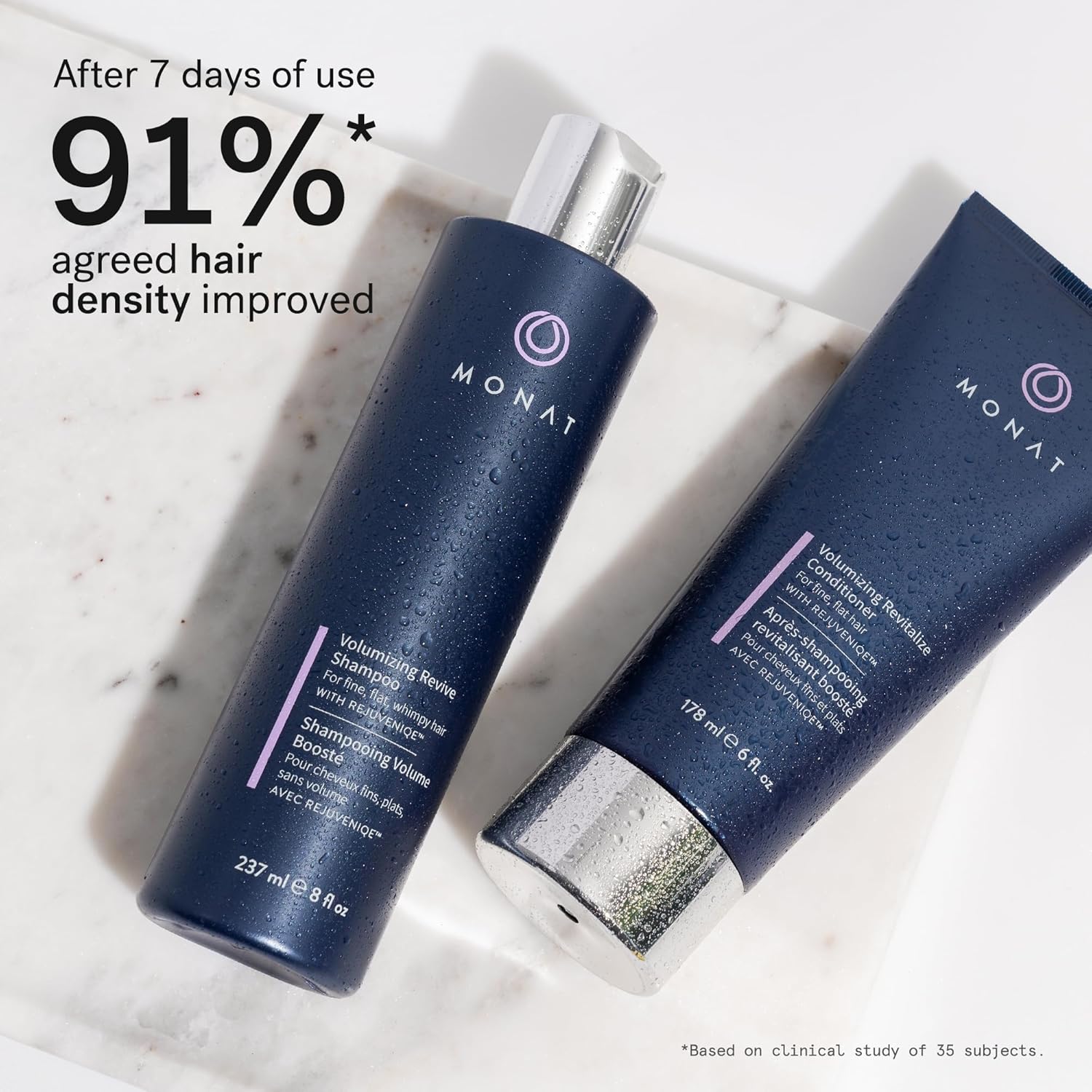 MONAT Volumizing Shampoo & Conditioner Set Infused with REJUVENIQE – Lightweight Care for Fine, Flat Hair – Enhances Volume, Adds Softness and Shine – Net Wt. 237 ml (8 fl. oz.) & 177 ml (6 fl. oz.)