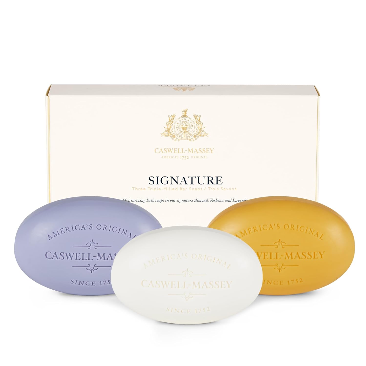 Caswell-Massey Natural Bar Soap Gift Set, Almond, Verbena, Lavender Scents, Triple-Milled Moisturizing Body Soap, Plant-Based for All Skin Types, Men, Women, Made in USA, 3 Bars, 5.8 oz Each