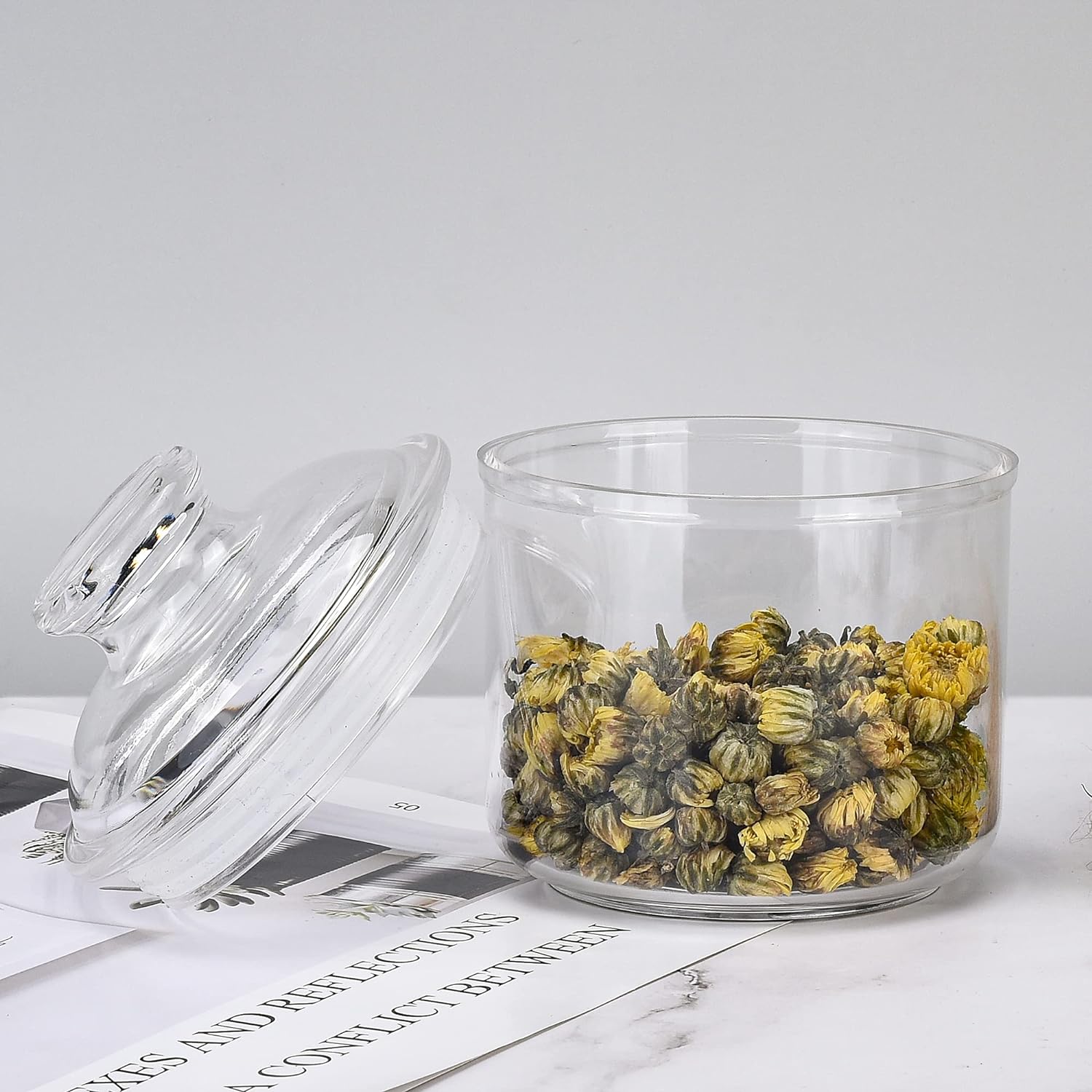 - Safe and Durable: This storage jar is made of acrylic. Acrylic is very safe material.It is not as fragile as glass. Even if it is damaged, it will not form sharp fragments like glass. Therefore, acrylic storage jar avoid potential dangers