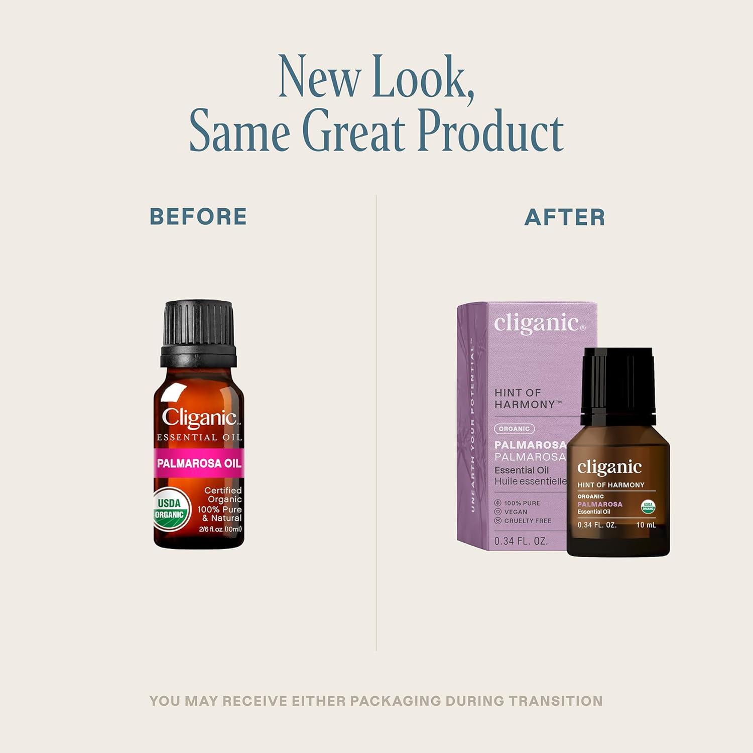 Cliganic Organic Palmarosa Essential Oil, 100% Pure Natural Undiluted (10ml), for Aromatherapy | Non-GMO Verified (Packaging May Vary)