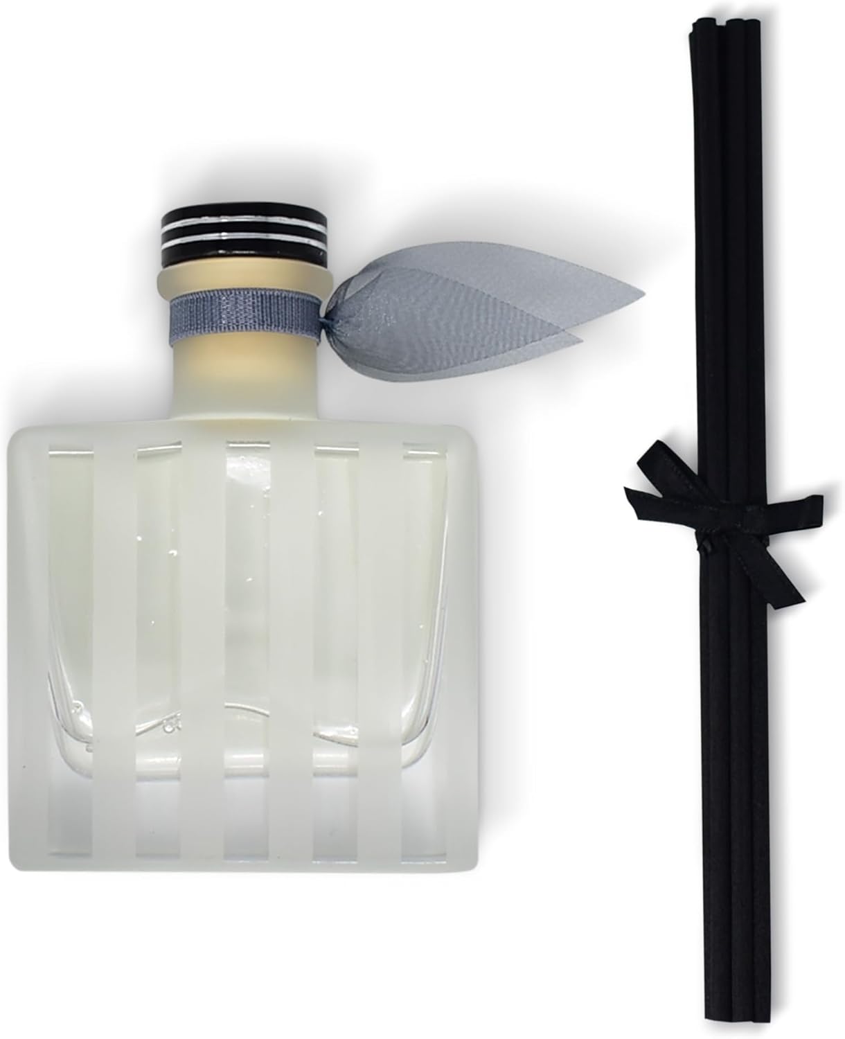 - SEA SALT – evokes the airy essence of Sea Air, Salt, Ozone, Jasmine Blossoms, and Musk; presented in our Modern Striped Diffuser, a sleek frosted glass bottle etched with clean vertical stripes for a minimalist yet eye-catching look, topped with a slender neck and delicate gray ribbon accent for a refined, timeless look; perfect for slate, charcoal, and coastal interiors