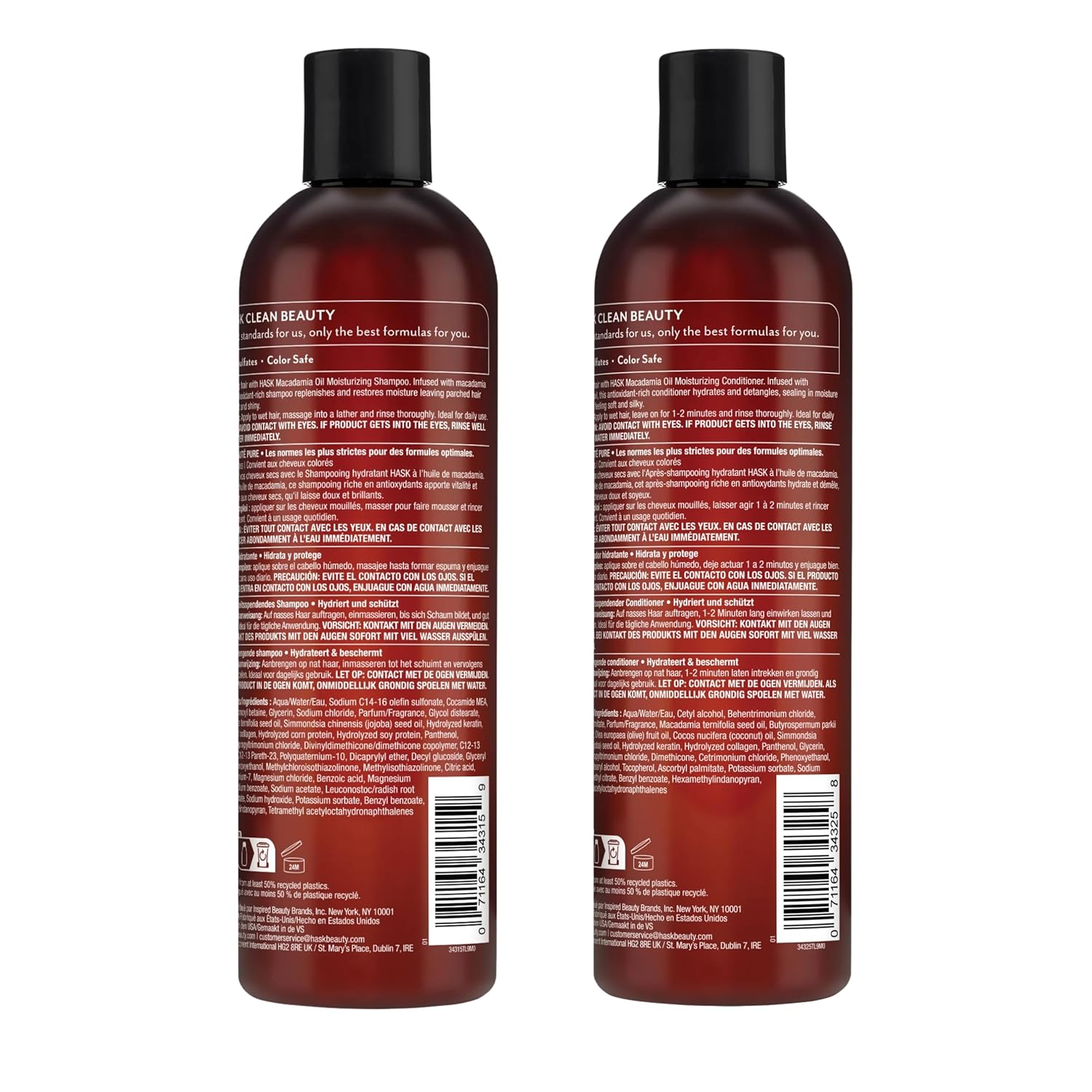 HASK Macadamia Oil Moisturizing Shampoo + Conditioner Set | For All Hair Types, Sulfate-Free, Paraben-Free, Gluten-Free, Cruelty-Free, Color Safe | 12oz each