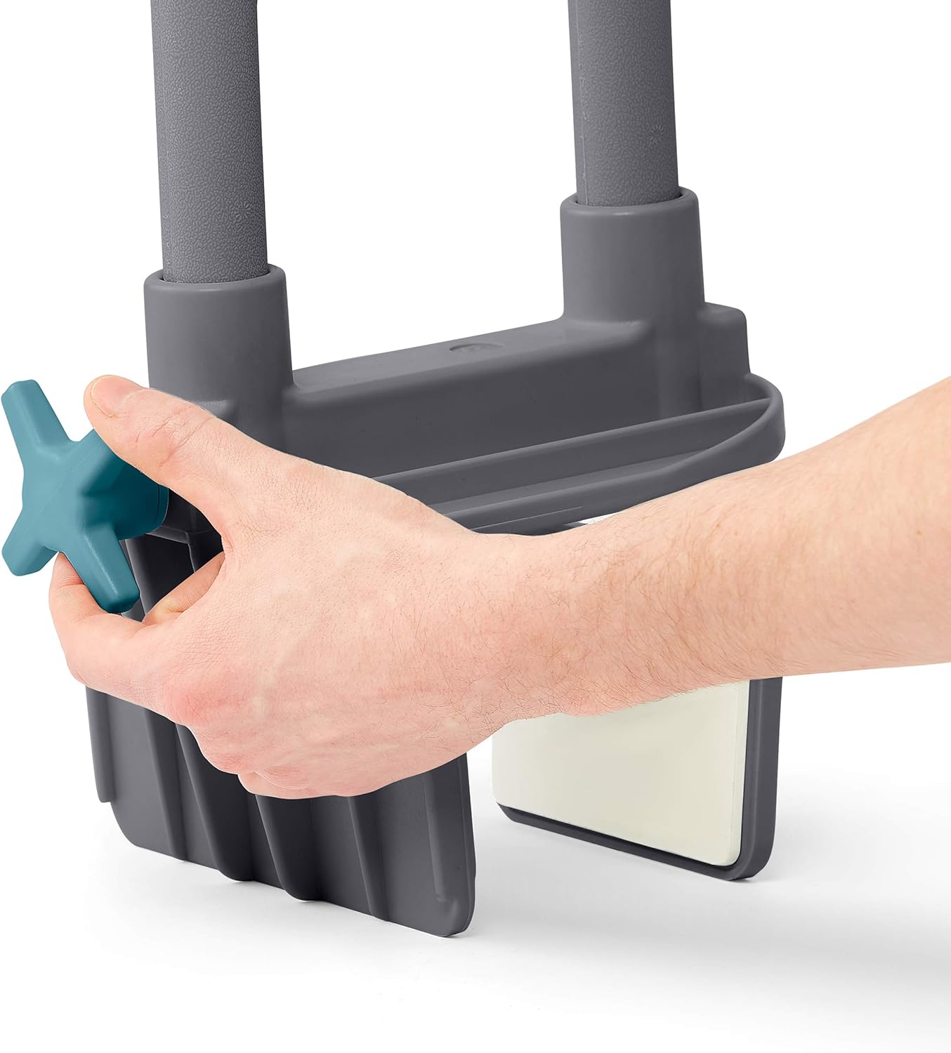 - Rugged enamel-coated steel assist grab bar features tool-free installation with non-slip, rubber-lined pads that clamp to tub surfaces without scratching them