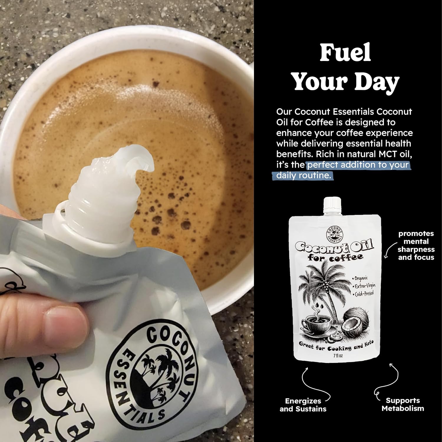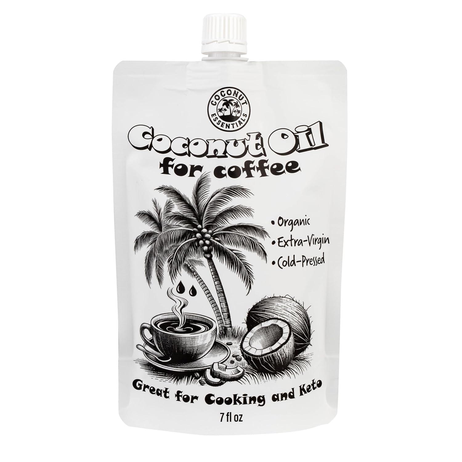 Coconut Essentials - Organic Coconut Oil for Coffee, Cold-Pressed, MCT Oil for Weight Loss, Brain & Digestive Health, Keto-Friendly, Natural Slim, 1 Pouch, 7 fl oz