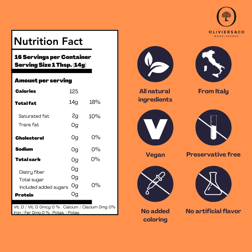 - HEALTHY & NATURAL Rich in antioxidants and healthy fats, this citrus olive oil is 100% natural with no artificial flavors, colors, or preservatives. A guilt-free indulgence for food lovers.