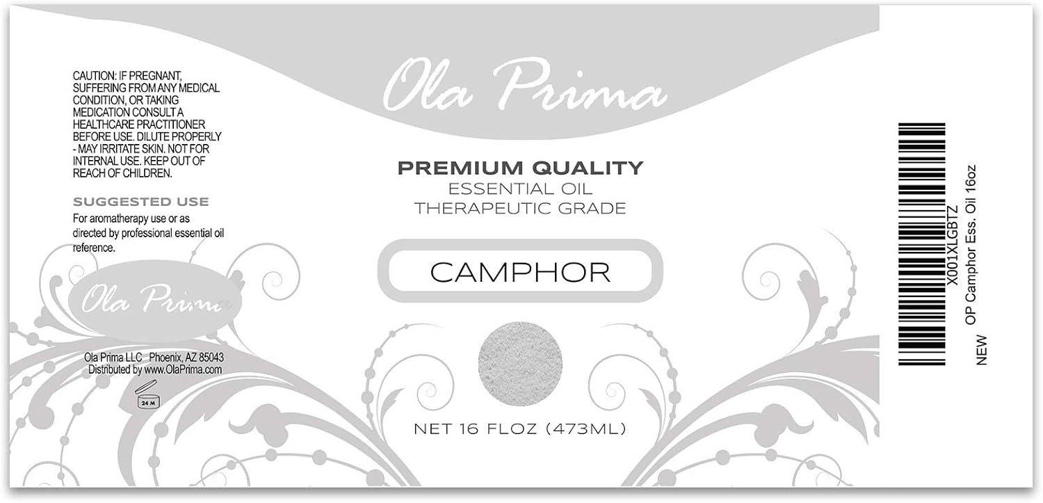 Ola Prima Camphor Essential Oil for Aromatherapy, Diffuser, Freshener (16 oz Bulk)