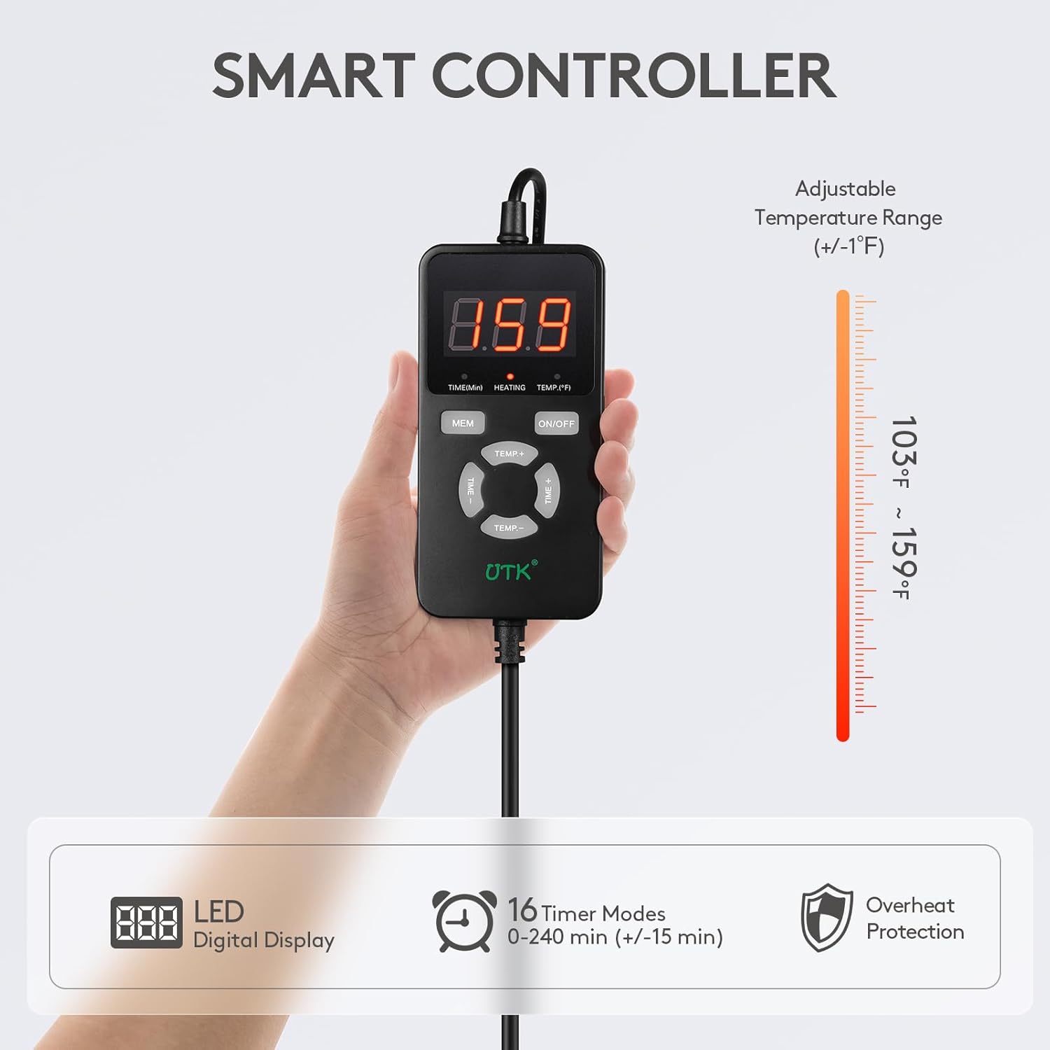 - 【Warm Tips】- It takes time for the heating pad to warm up, the recommended heating time is at least 30 minutes, and the temperature can be set above 100°F. UTK infrared heating pad provide 3 years warranty, any question,please contact us first,we will try best to solve it.