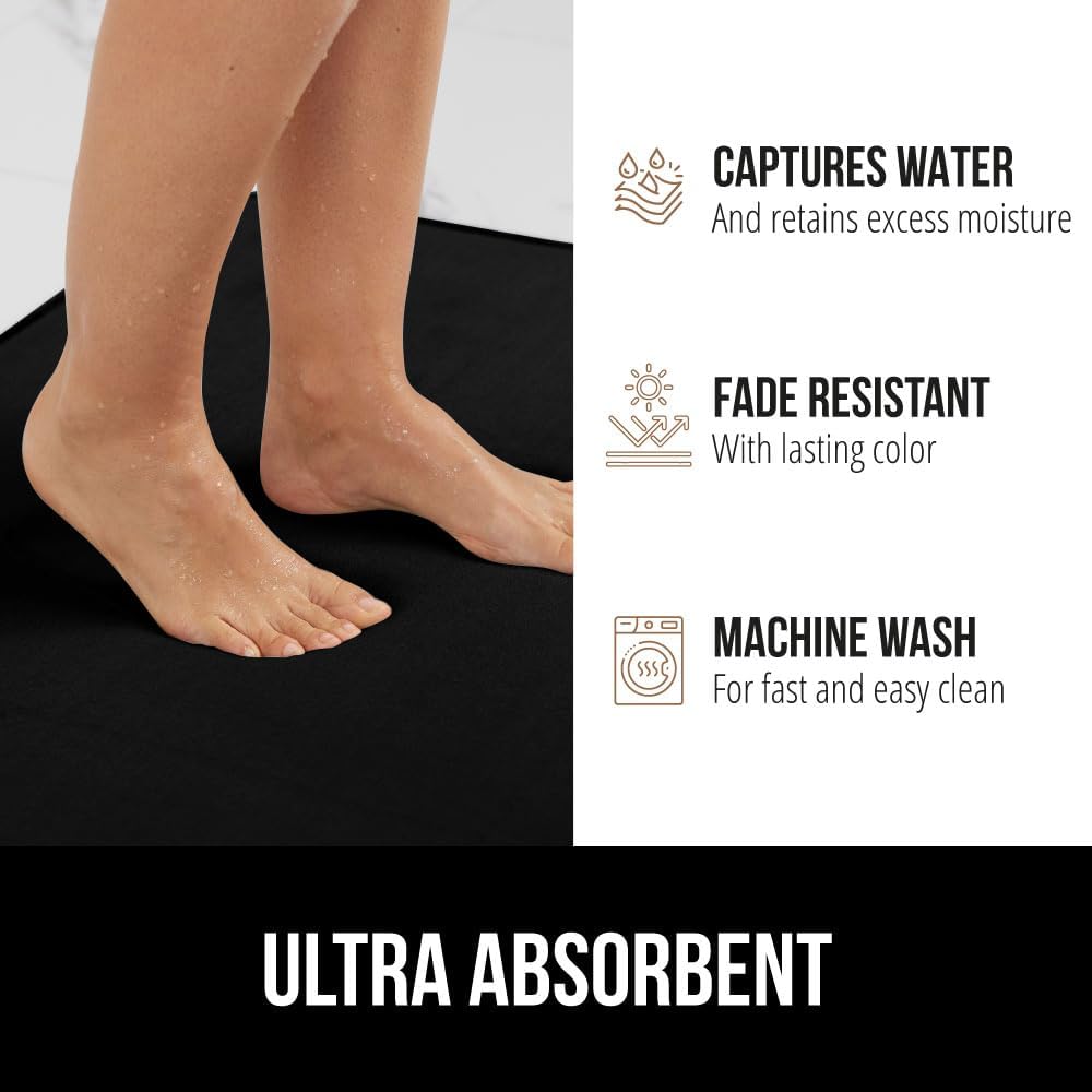 GORILLA GRIP Thick Memory Foam Toilet Rug for Bathroom, U Shaped Washable, Soft Absorbent Velvet Topside Floor Mats, Machine Wash, Cushioned Luxury Rugs for Bath Room, 22.5 x 19.5, Black