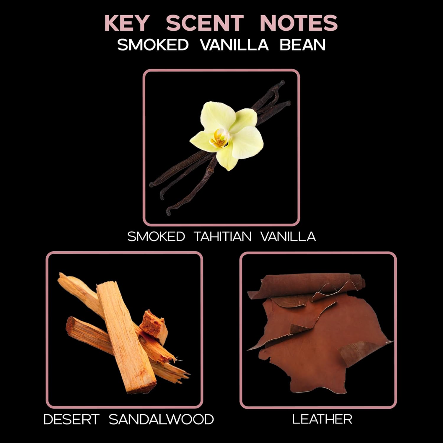 - SMOKED VANILLA – is a sultry and warm mix of Smoked Tahitian Vanilla, Sandalwood, Leather, and Southern Bourbon; the Bell Diffuser with a rich chocolate brown ribbon accent adds a cozy, inviting tone; ideal for tan, brown, and rustic interiors.