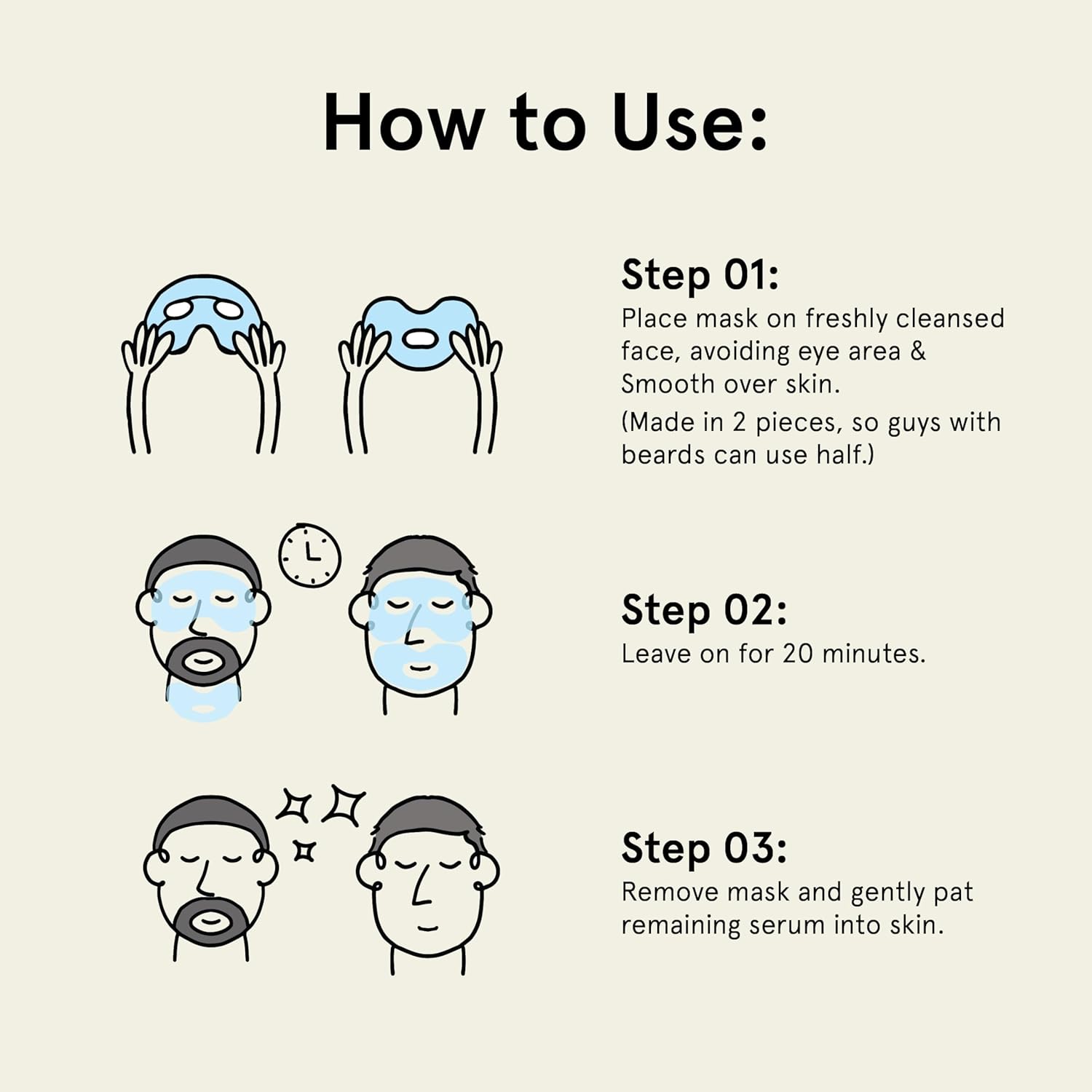 - ⭐ EXTRA LARGE FACE MASK FOR MEN: Our large, durable face mask sheets won’t tear on application. They’re AWARD WINNING –Rated best face mask by Men's Health, New York Magazine, Gear Patrol & The Manual; our collagen face mask wont strip face oil but is an ultra hydrating face mask sheet that helps regulate sebum production. Who says beauty and skin care are for women? This hydrogel clear mask beats a paper mask & finally solves the beard struggle –A face mask for bearded men! (2 Pcs)