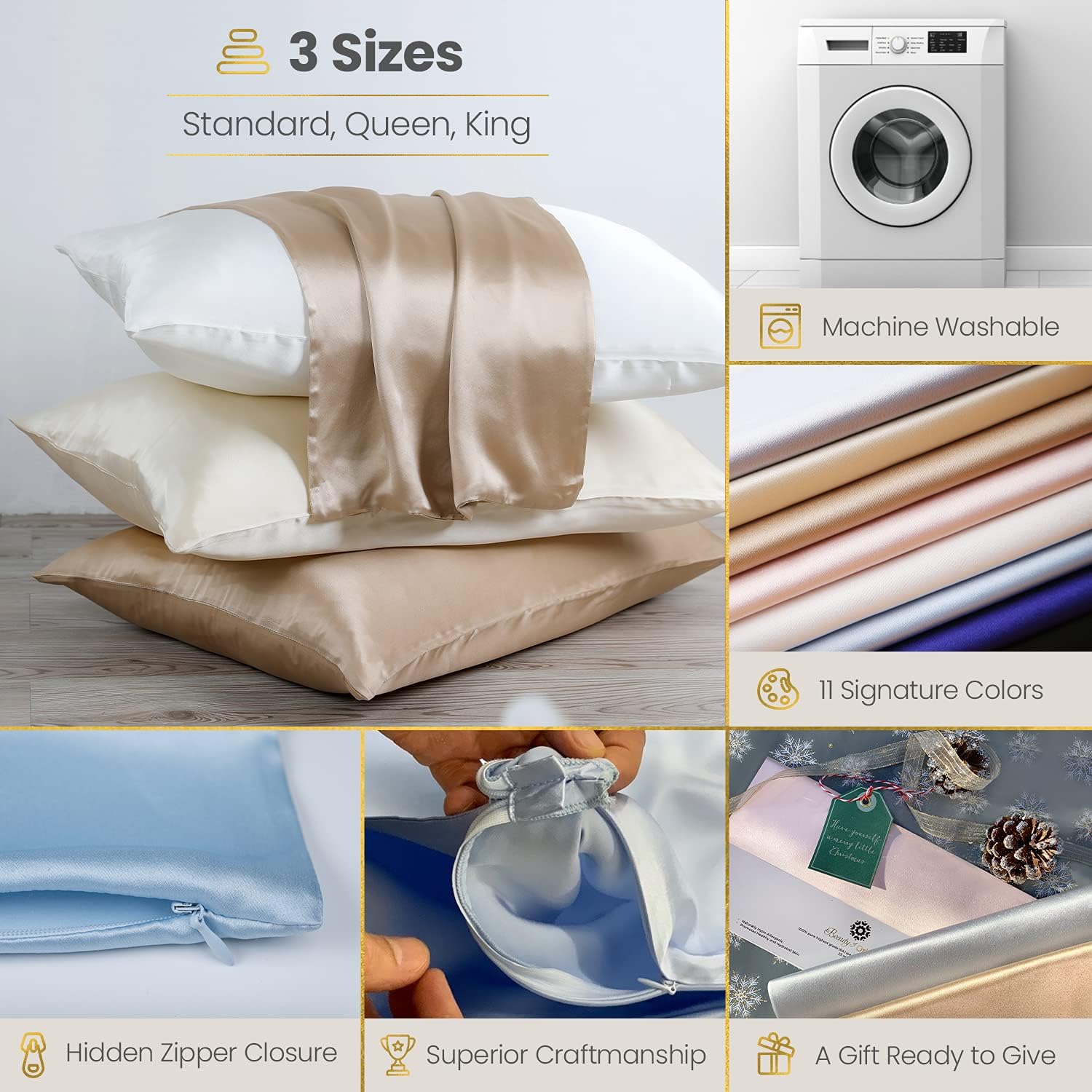 - WAKE UP BEAUTIFUL: Reveal your best skin and hair every morning with our silk pillow cases for hair and face. Silk's natural proteins and 18 amino acids nourish your skin, reduce wrinkles, and minimize acne. Say goodbye to bed head, hair breakage, and static. Perfect for sensitive skin and curly hair, you'll never go back to cotton or satin again.