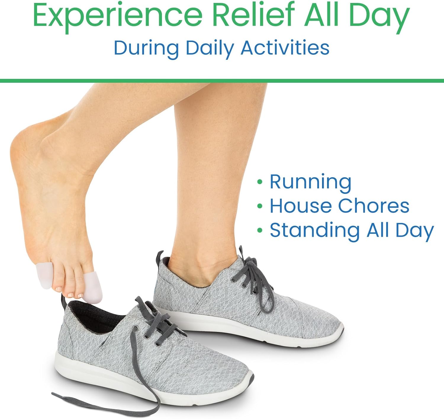 - PROTECT ANY TOE: Reduce friction and irritation between toes, cushion blisters and sores and protect missing, ingrown or damaged toenails with the ViveSole toe caps. Worn under or over socks or hosiery, the soft toe caps can be placed on any toe and multiple toes as needed and comfortably fit in most shoe styles.