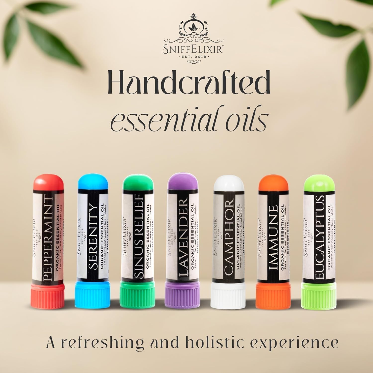 - NATURAL RELAXATION SUPPORT: Looking for a quick and easy way to calm yourself? Our SniffElixir lavender essential oil nasal inhaler stick helps ease feelings of tension and promotes a sense of well-being. This nasal stick inhaler, aromatherapy nasal inhaler is great for reducing unease and providing a convenient, natural way to support your relaxation anytime, anywhere. Essential oil nasal inhaler, calm nose inhaler offers a simple solution for calming your mind and enhancing your mood.