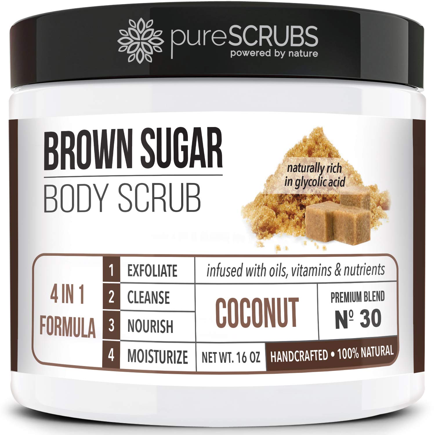 - GET ULTRA SMOOTH SKIN FAST - THIS WORKS! Our unique “4 in 1 Formula” does everything a body scrub should do and more. Pure brown sugar crystals infused with essential oils, nutrients and skin softeners helps to smooth away rough, bumpy, and uneven textures to instantly reveal your true soft, healthy and radiant skin.You will love the coconut aroma!