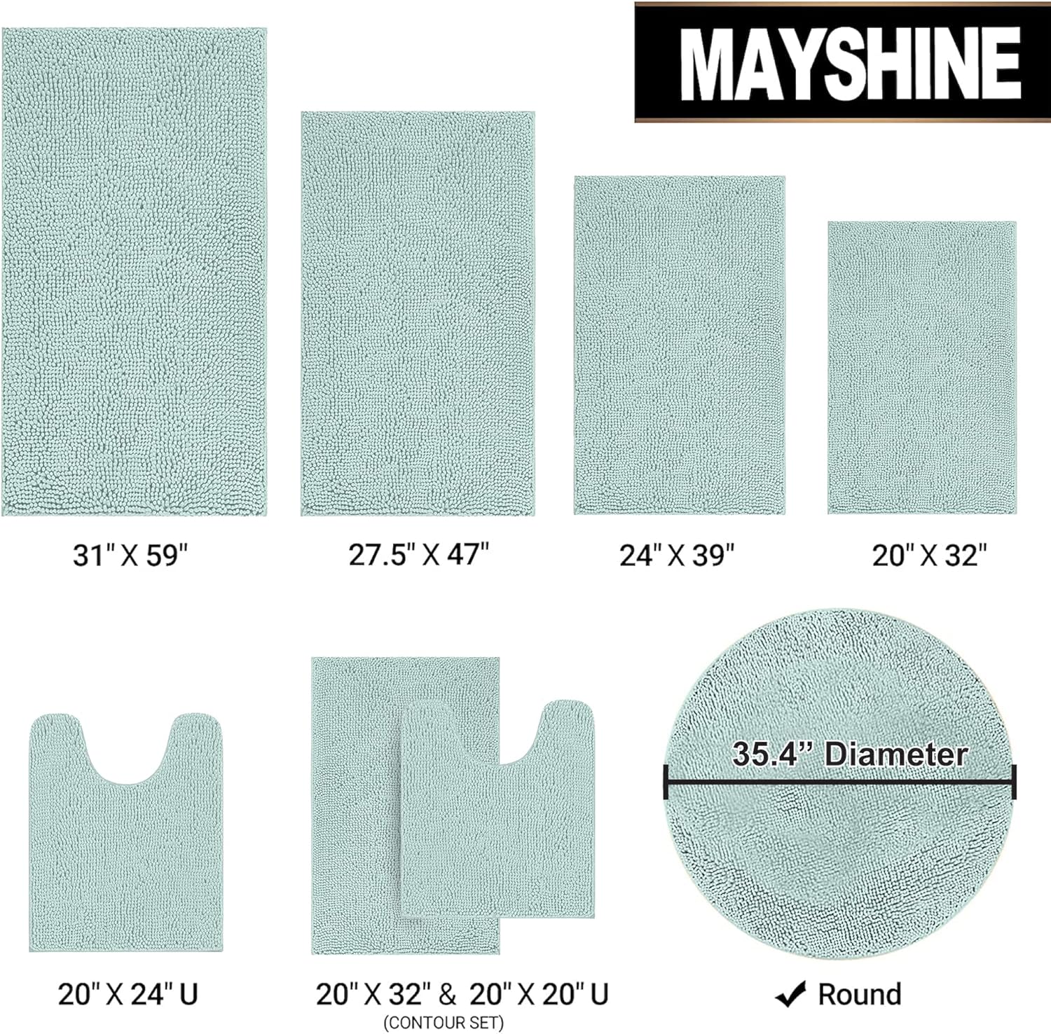 MAYSHINE Round Area Rug Set for Bathroom | Soft Plush Chenille Bath Mat, Water Absorbent Non-Slip Bathroom Rug | Washable Shag Carpet for Shower, Bedroom, or Home Décor | 36"x36" (Round) | Spa Blue