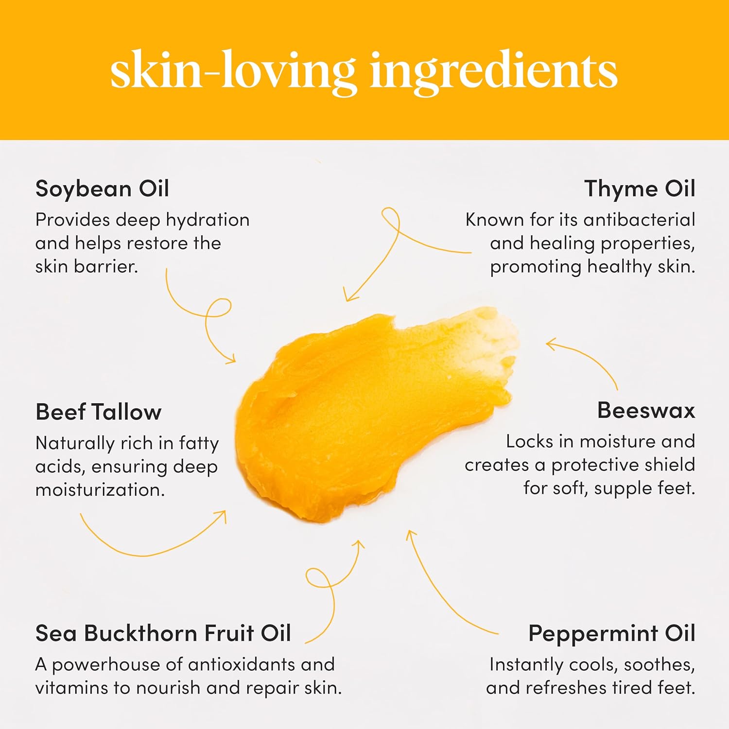 - Nature’s Healing Power for Your Feet – Handcrafted with organic Sea Buckthorn, Thyme Oil, and Peppermint to repair, refresh, and rejuvenate dry, cracked heels and rough skin.