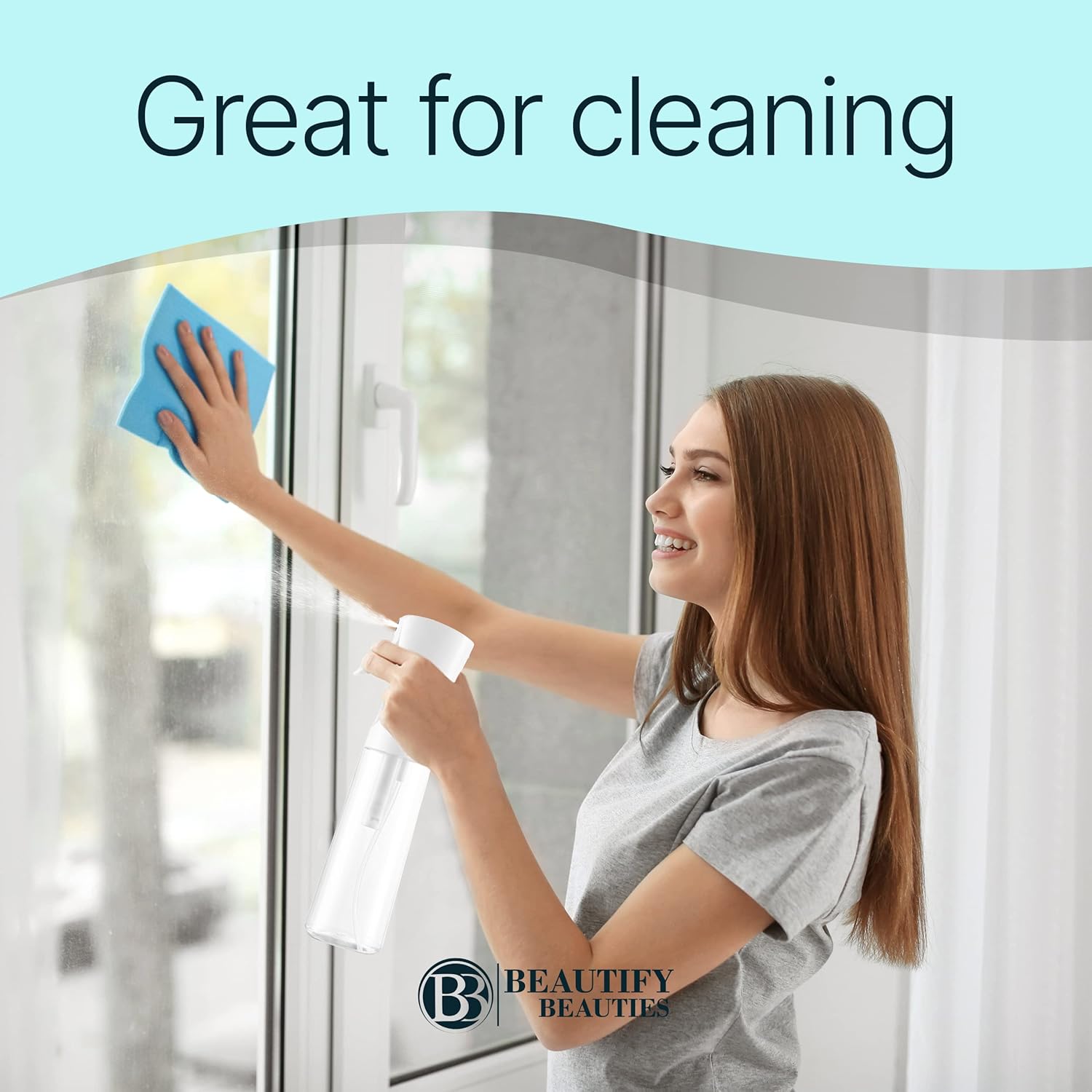 BeautifyBeauties Spray Bottle For Hair – Continuous Mister Spray Bottle for Hairstyling, Cleaning, Plants, Pets, Barbers, Salons, Essential Oil Scents (Clear, 18.6oz/500ml) "11" H x 2.6" L