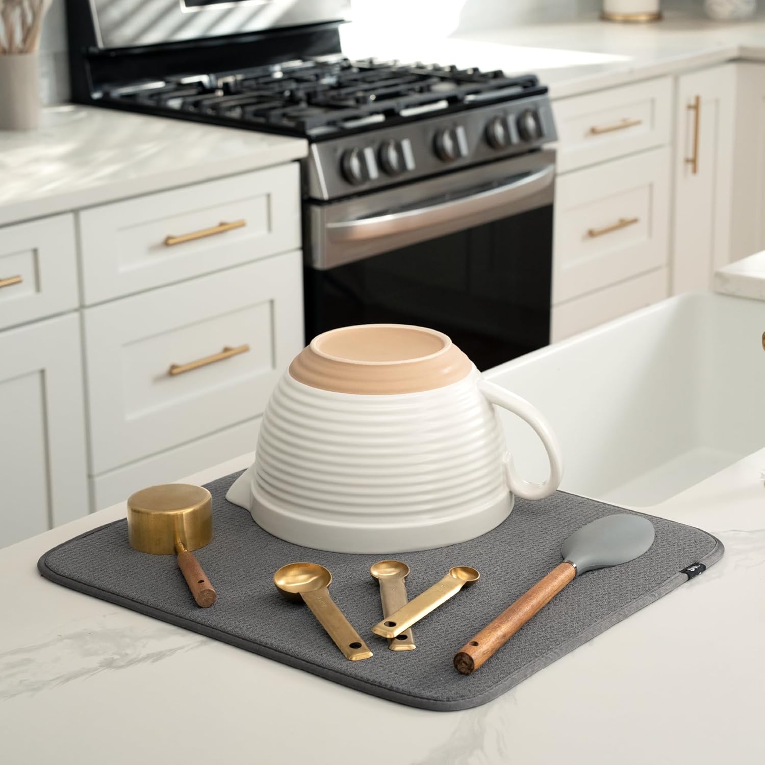 S&T INC. Dish Drying Mat, 16” x 18”, Absorbent Microfiber Kitchen Counter Mat, Dish Drying Pad for Dishes, Utensils, Pots and Pans, Large, Charcoal