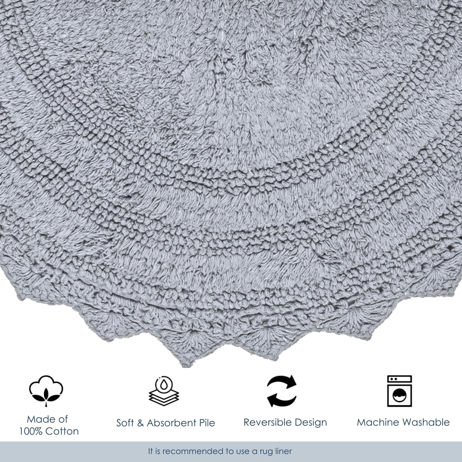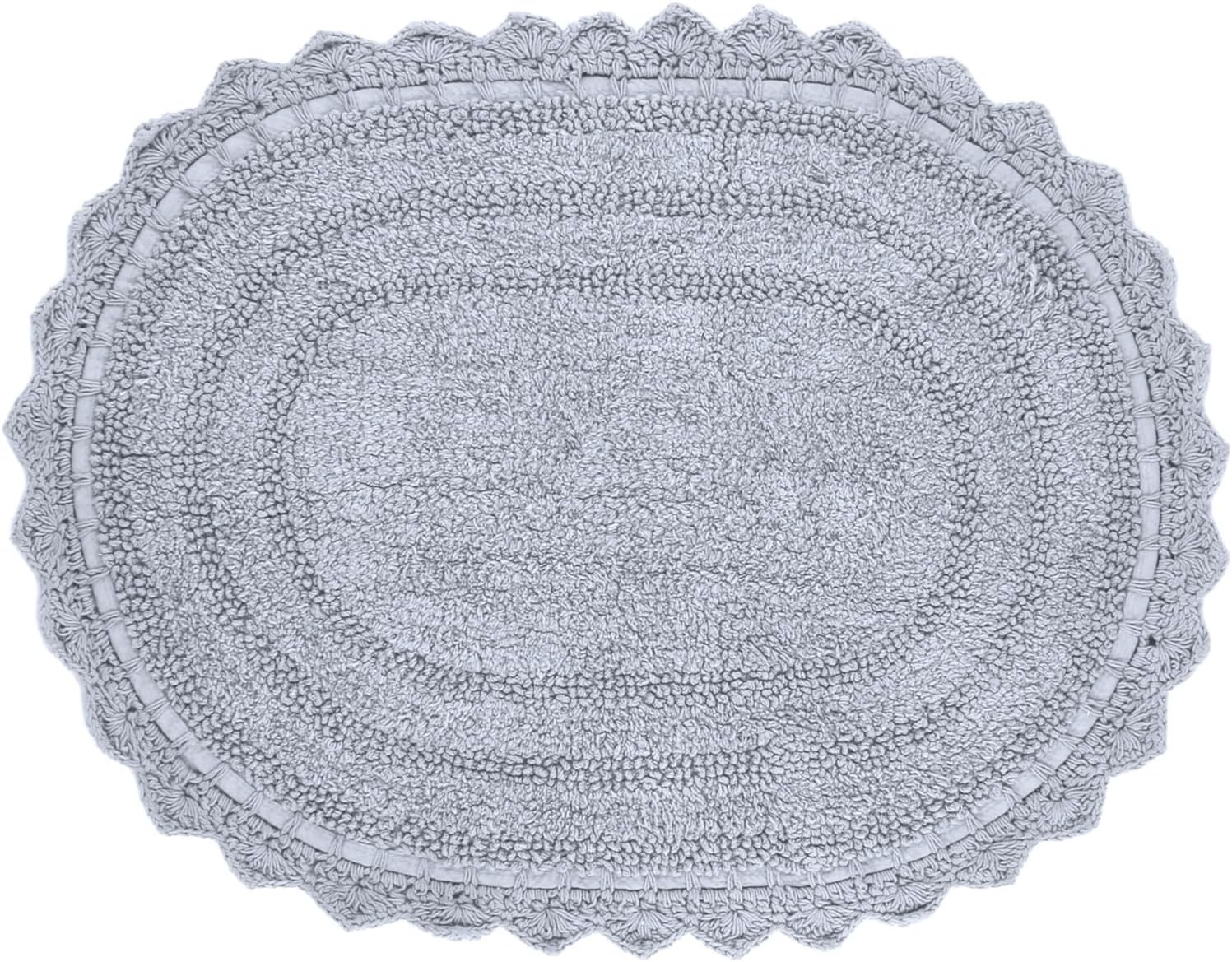 RAJRANG Bath mat for Bathroom Kitchen and Spa with Crochet Pattern Cotton Absorbent Soft Reversible Light Grey Bath Rug Oval 24x17 Inches