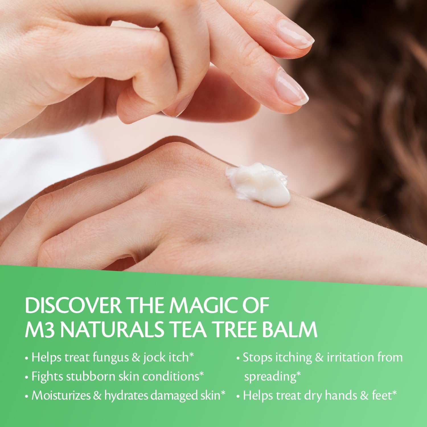 M3 Naturals Tea Tree Oil Foot Balm – Soothing Moisturizer for Dry, Cracked Feet & Nails | Hydrating & Nourishing Skin Care for Tired, Rough, and Calloused Feet | Refreshing 2 oz Balm
