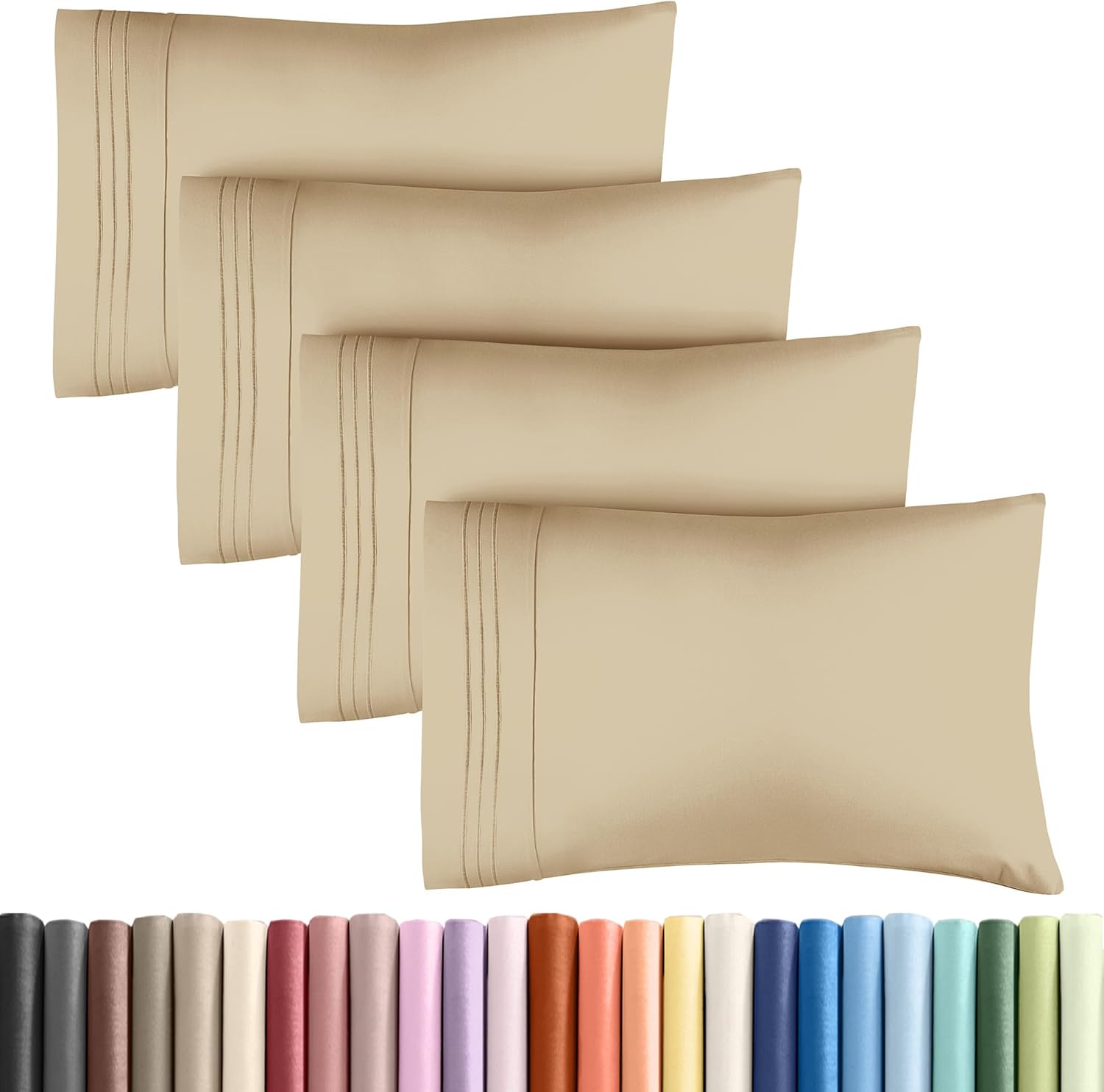 King Pillow Cases Set of 4 - Ultra Soft Hotel Quality Pillowcase Covers - Comfy, Cozy & Wrinkle Free - Shrinkage, Stain and Fade Resistant - Machine Washable Pillow Protectors - 4 Piece Set - Beige