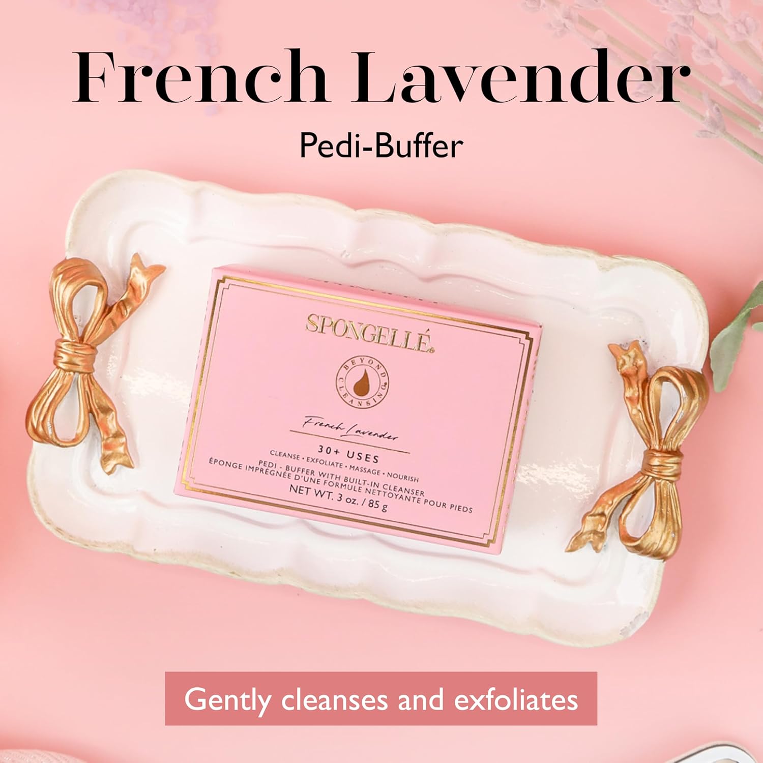 - Revitalize your feet with the Spongelle French Lavender Pedi Buffer, combining a foot scrubber and soap-infused sponge for an indulgent pedicure experience at home.
