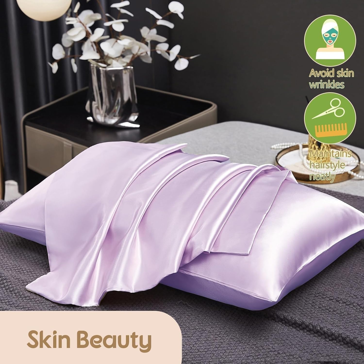 Juwenin Bedding,Luxury Satin Pillowcase with Zipper (Silky Satin Pillow Case for Hair) Set of 2 (Lavender, Standard(20''x26''))