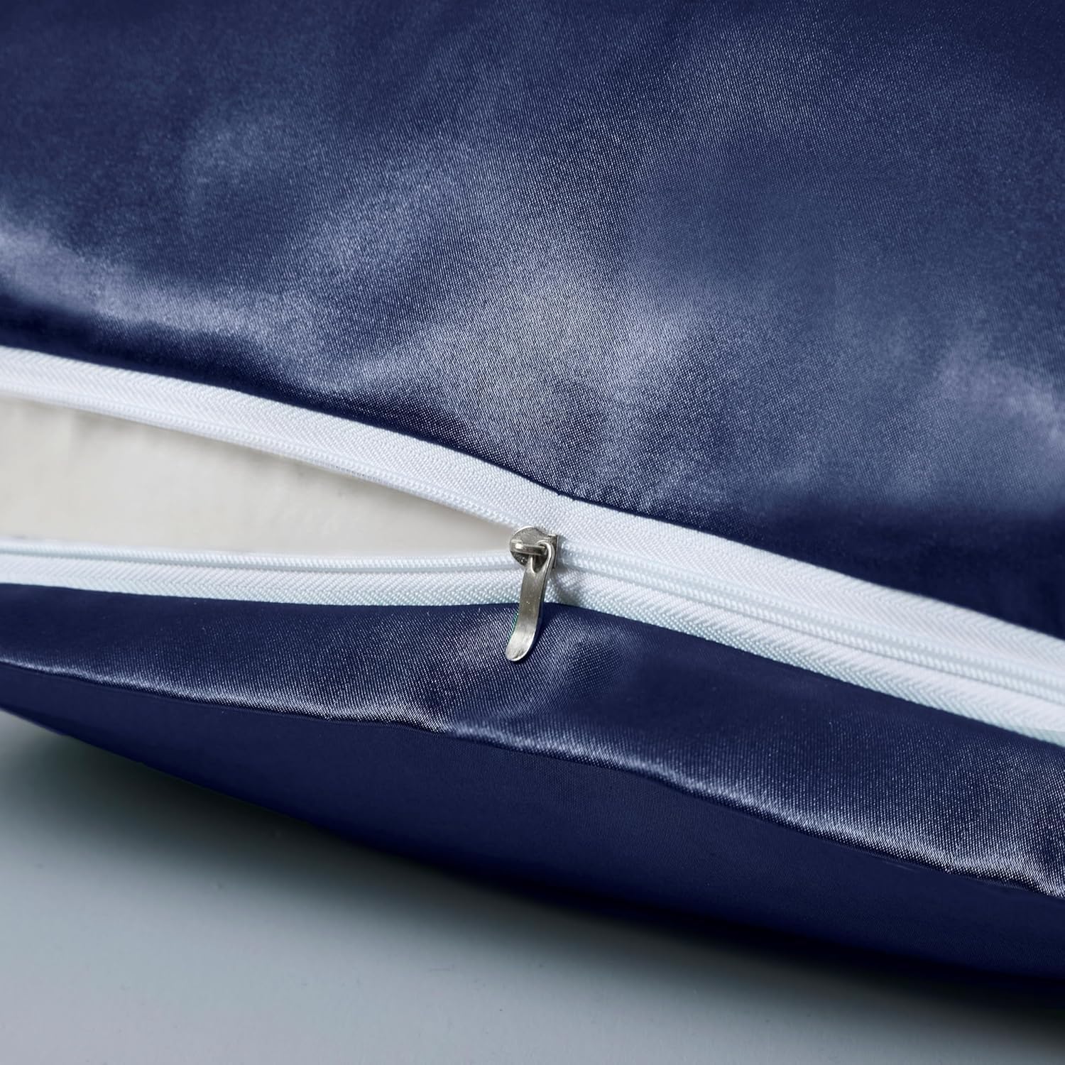 Juwenin Bedding,Luxury Satin Pillowcase with Zipper (Silky Satin Pillow Case for Hair) Set of 2 (Navyblue, Standard(20''x26''))