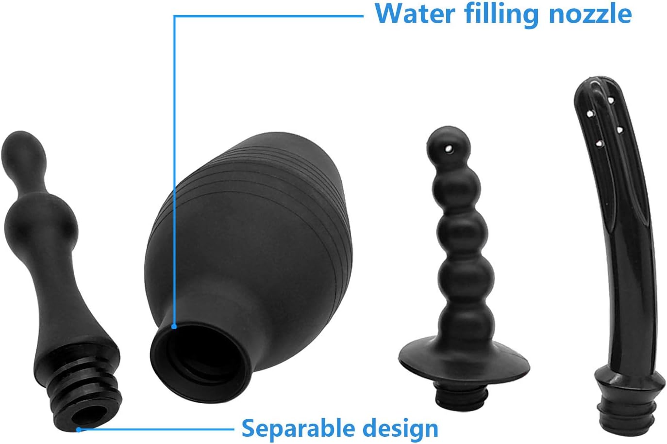 - 310ML capacity black silicone enema bulb with 3 nozzle is made of premium medical PVC, BPA FREE and used for anal.