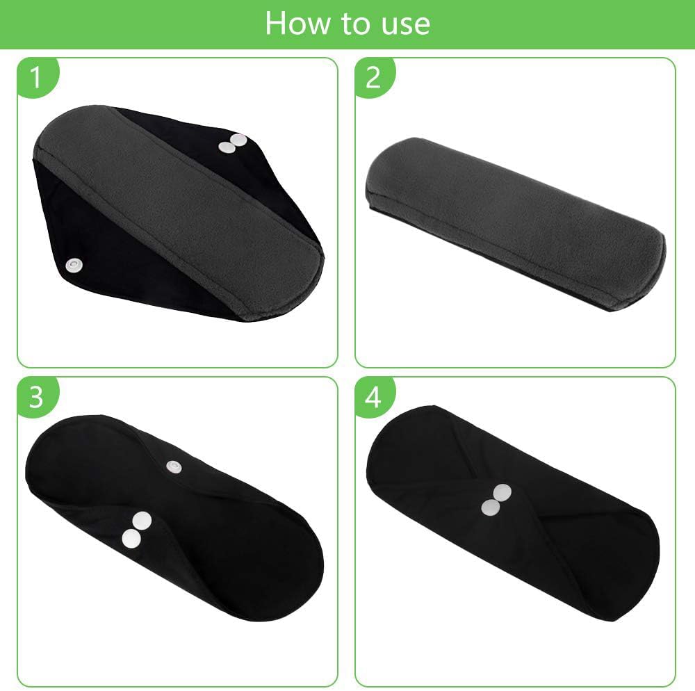 - 【Superior Quality】Contains 2 sizes for different menstrual volumes (23cm & 28cm). 4 layers of charcoal bamboo fiber against the skin, 2-layer super-absorbent microfiber, impermeable PUL outer layer to prevent leaks and spills.