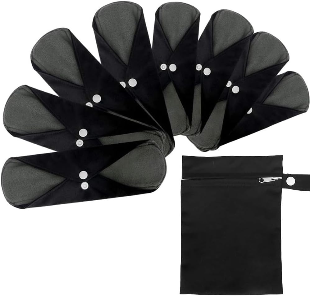 Reusable Bamboo Sanitary Towels Pads, TopDirect 8 Pack Medium & Large (9.06" & 11.02") Heavy Flow Night Pads Washable Cloth Menstrual Pad with Wet Bag for Women