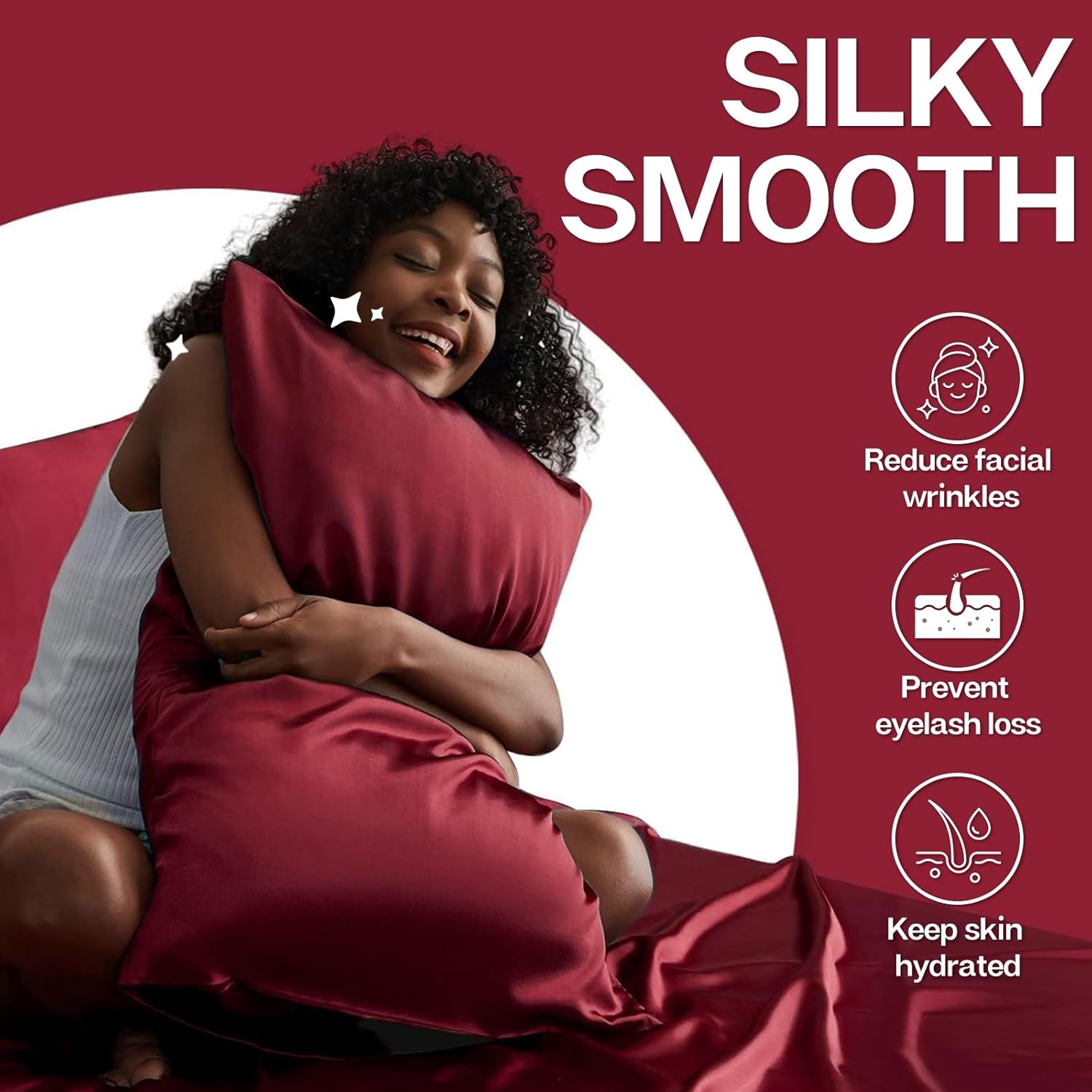 MR&HM Satin Pillowcase for Hair and Skin, Silk Satin Pillowcase 2 Pack, King Size Pillow Cases Set of 2, Silky Pillow Cover with Envelope Closure (20x40, Burgundy)