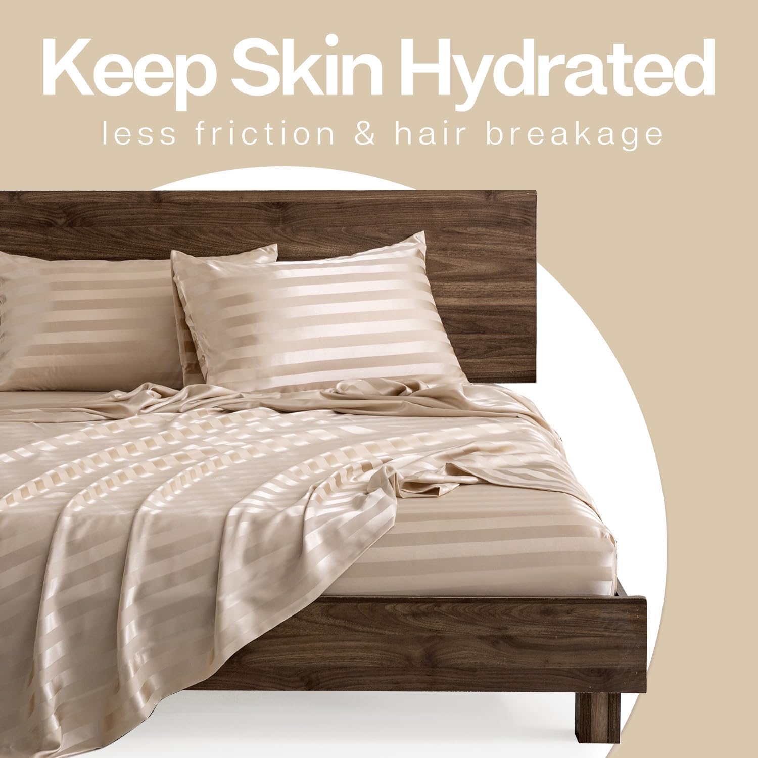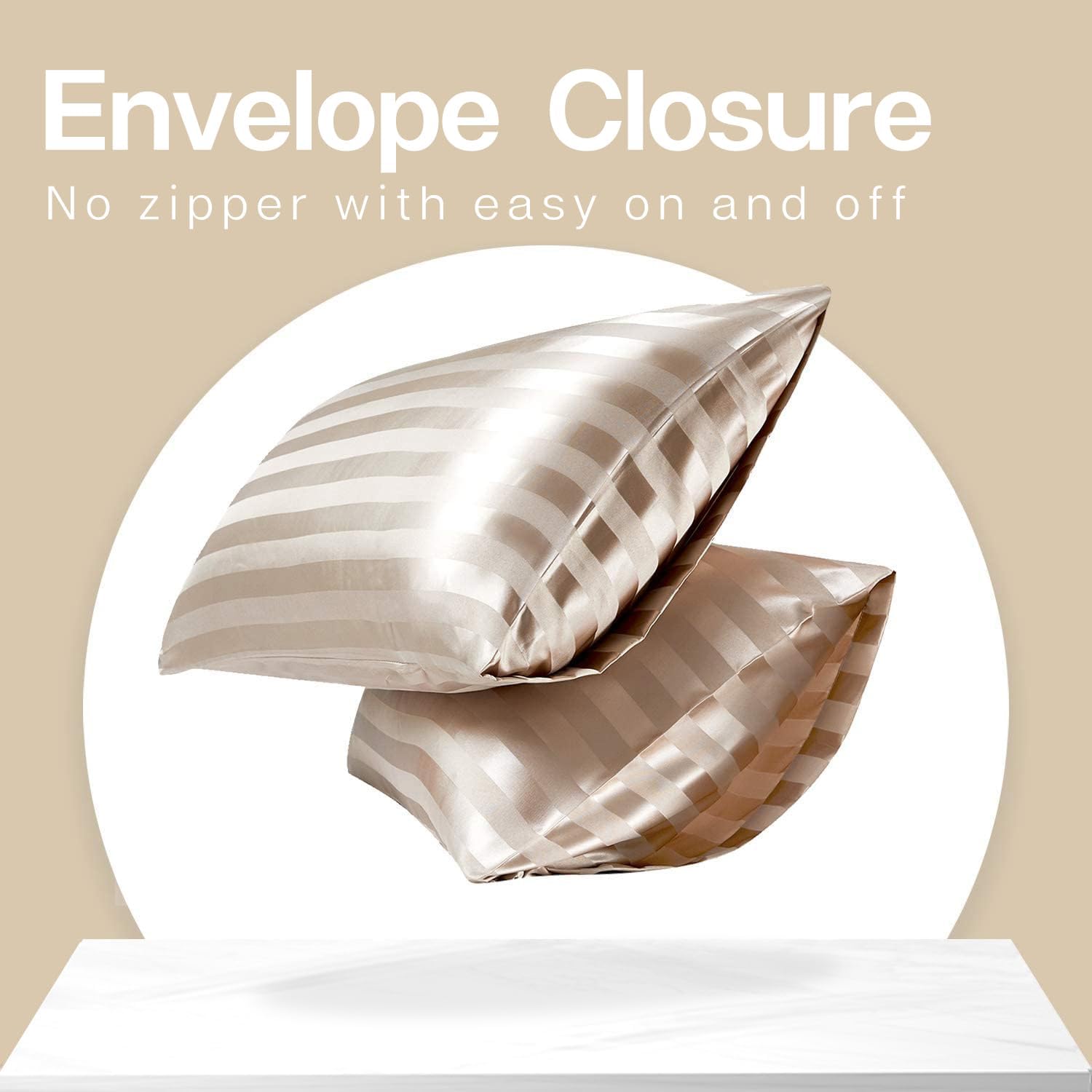 MR&HM Satin Pillowcase for Hair and Skin, Silk Satin Pillowcase 2 Pack, Queen Size Pillow Cases Set of 2, Silky Pillow Cover with Envelope Closure (20x30, Champagne Striped)