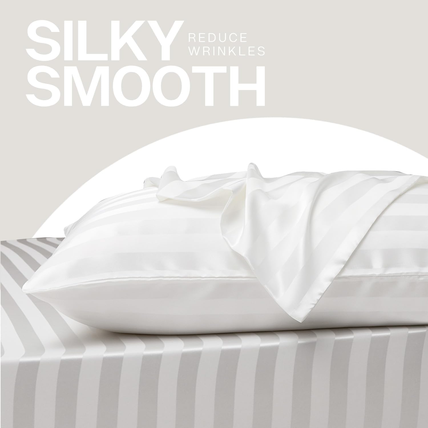 MR&HM Satin Pillowcase for Hair and Skin, Silk Satin Pillowcase 2 Pack, Queen Size Pillow Cases Set of 2, Silky Pillow Cover with Envelope Closure (20x30, Ivory Striped)
