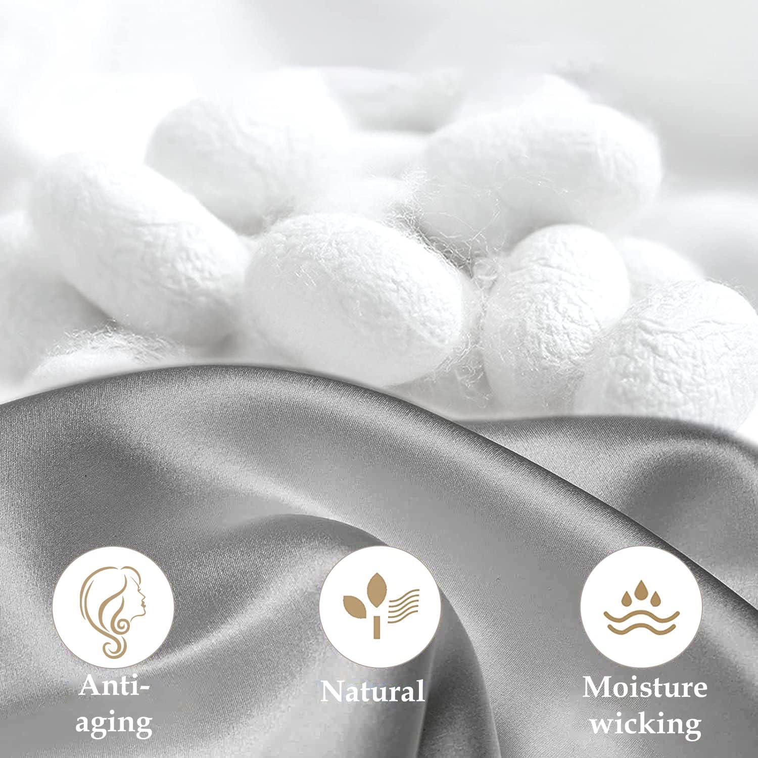 INSSL Silk Pillowcase for Women, Mulberry Silk Pillowcase for Hair and Skin and Stay Comfortable and Breathable During Sleep (Queen, Grey)