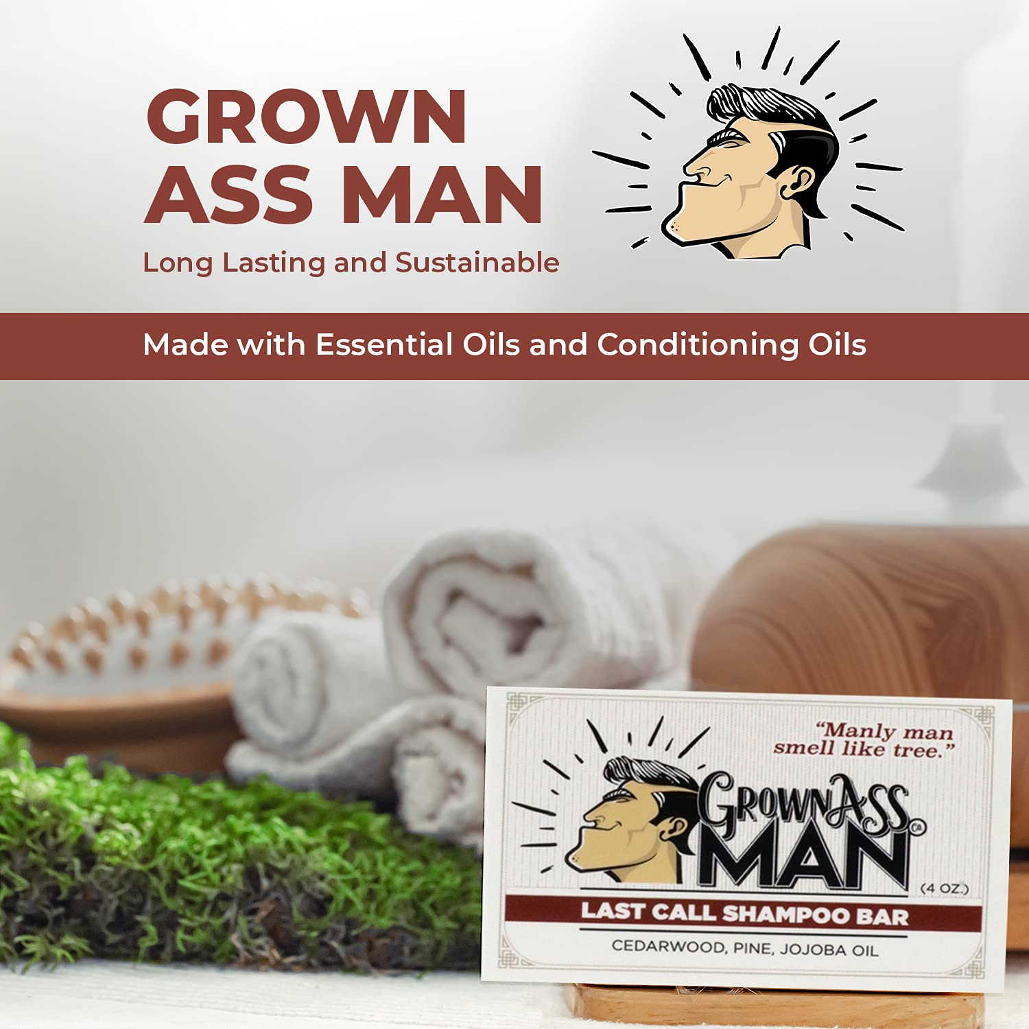 - LONG LASTING & SUSTAINABLE: Meant to last as long as 2 or 3 bottles of liquid shampoo depending on how well you take care of your bar. Made from naturally occurring ingredients around the world, Grown Ass Man Shampoo Bars were created to help the planet by providing you a cleanser with a low carbon footprint. We use only certified organic base oils in our shampoo and want you to feel safe knowing that we will never de-prioritize quality, sustainability, or health.