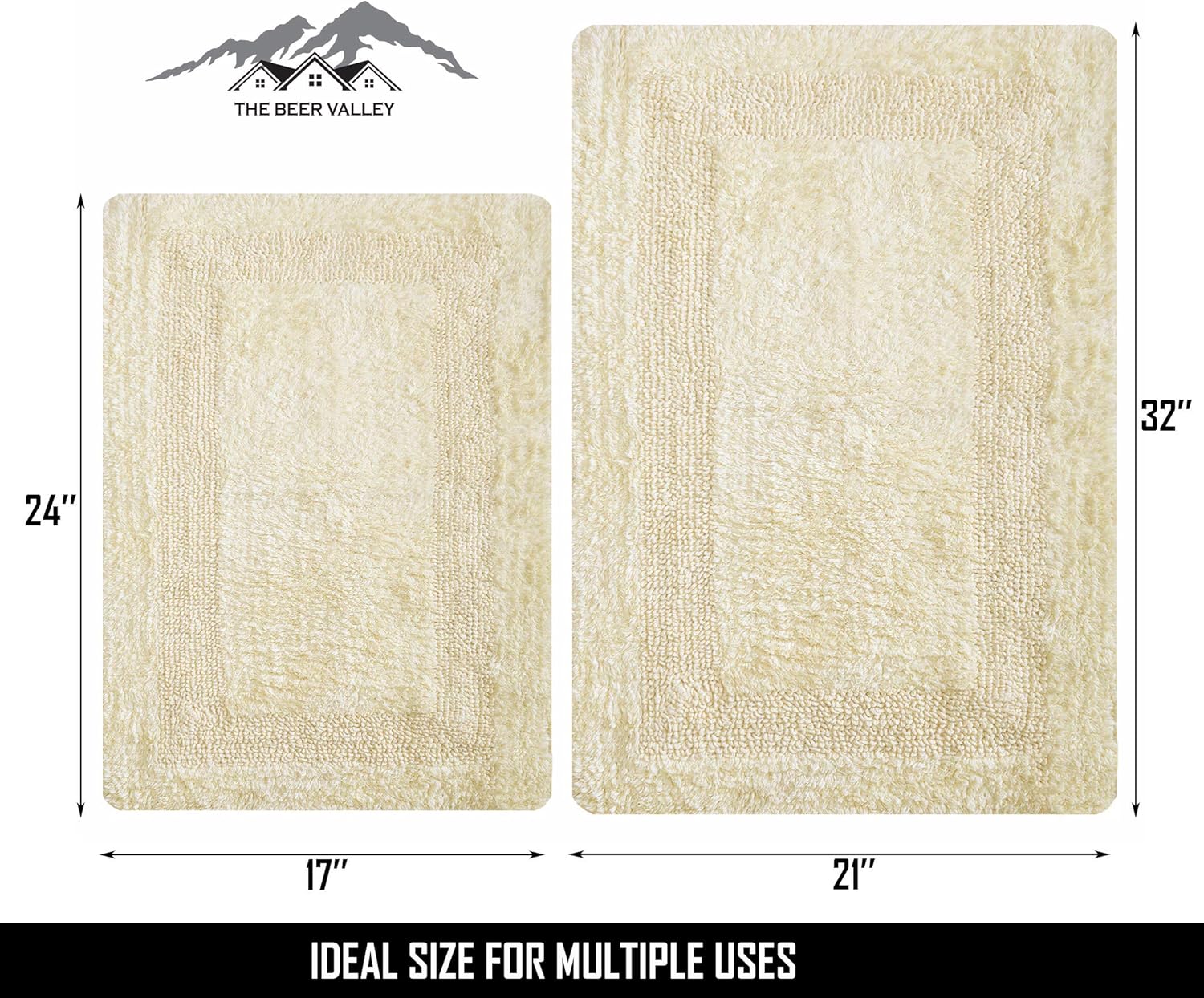 Bathroom Rugs Set 2 Piece Light Yellow Cotton Tufted Reversible Washable Bath Mats for Bathroom Floor| Quick Dry Bathroom Mat for Tub Spa Shower Toilet| Entry Way Door Mats|21x32 & 17x24 Inches