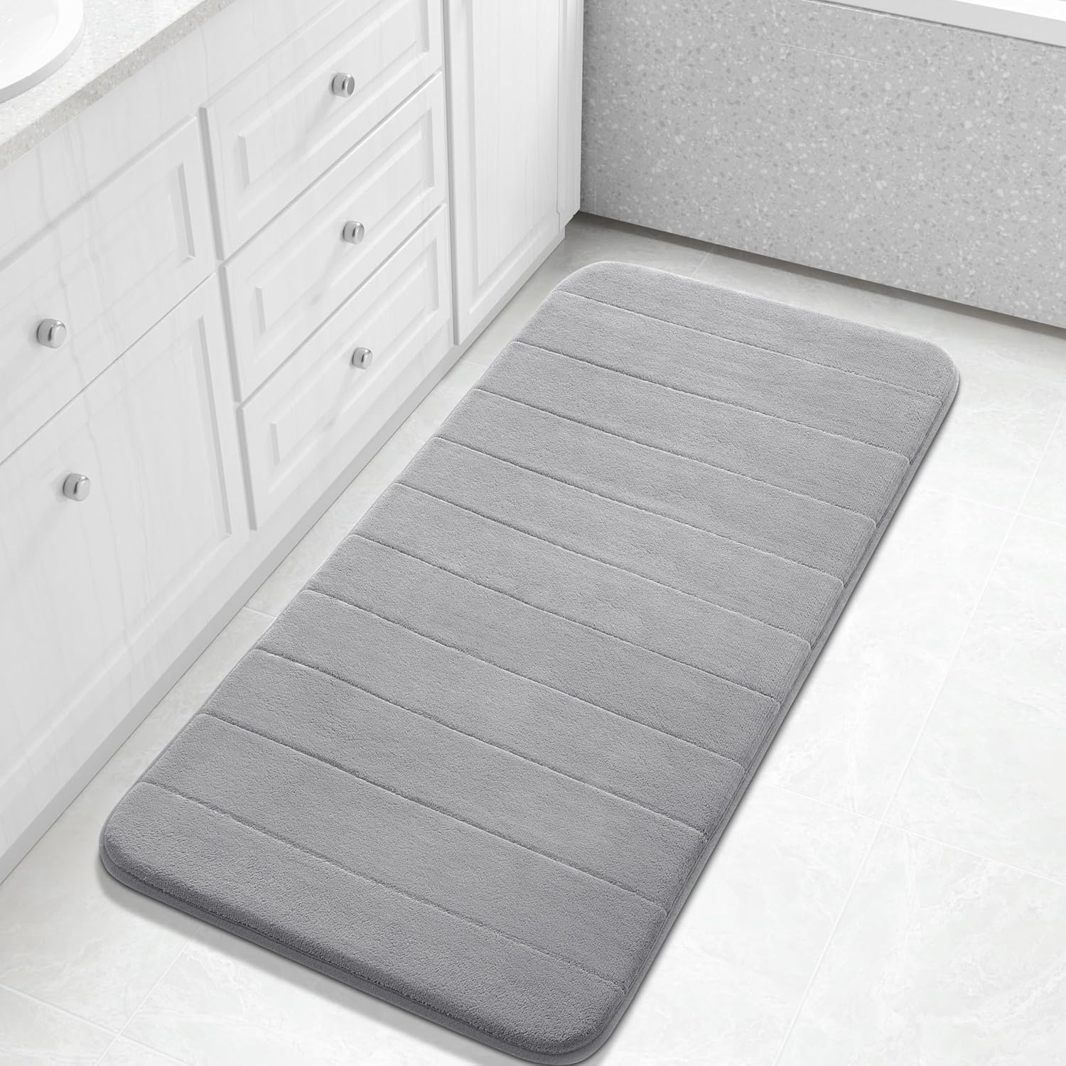 Yimobra Long Bath Mat 44"x24", Super Soft Quick Dry Memory Foam Bathroom Rug, Water Absorbent, Non Slip Backing Machine Washable for Tub Shower, Thick Comfort Support, Gray
