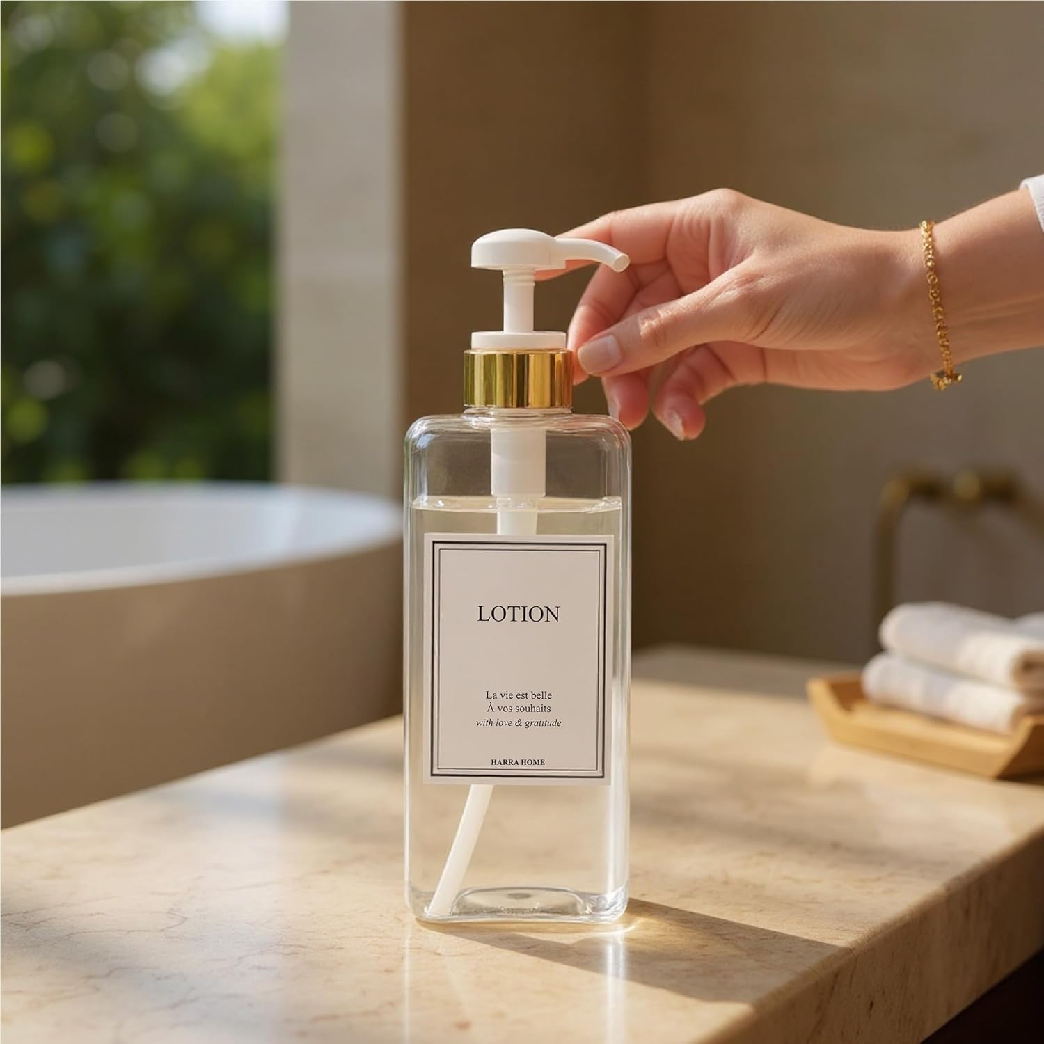 - ELEGANT & MODERN DESIGN — Elevate your bathroom decor with HARRA HOME bathroom accessories that create an instant hotel-style bathroom aesthetic. These decorative pump dispensers transform any shower and sink area into a modern bathroom sanctuary without breaking the budget. Perfect bathroom organizers that eliminate clutter from multiple bottles while adding elegance to your space.