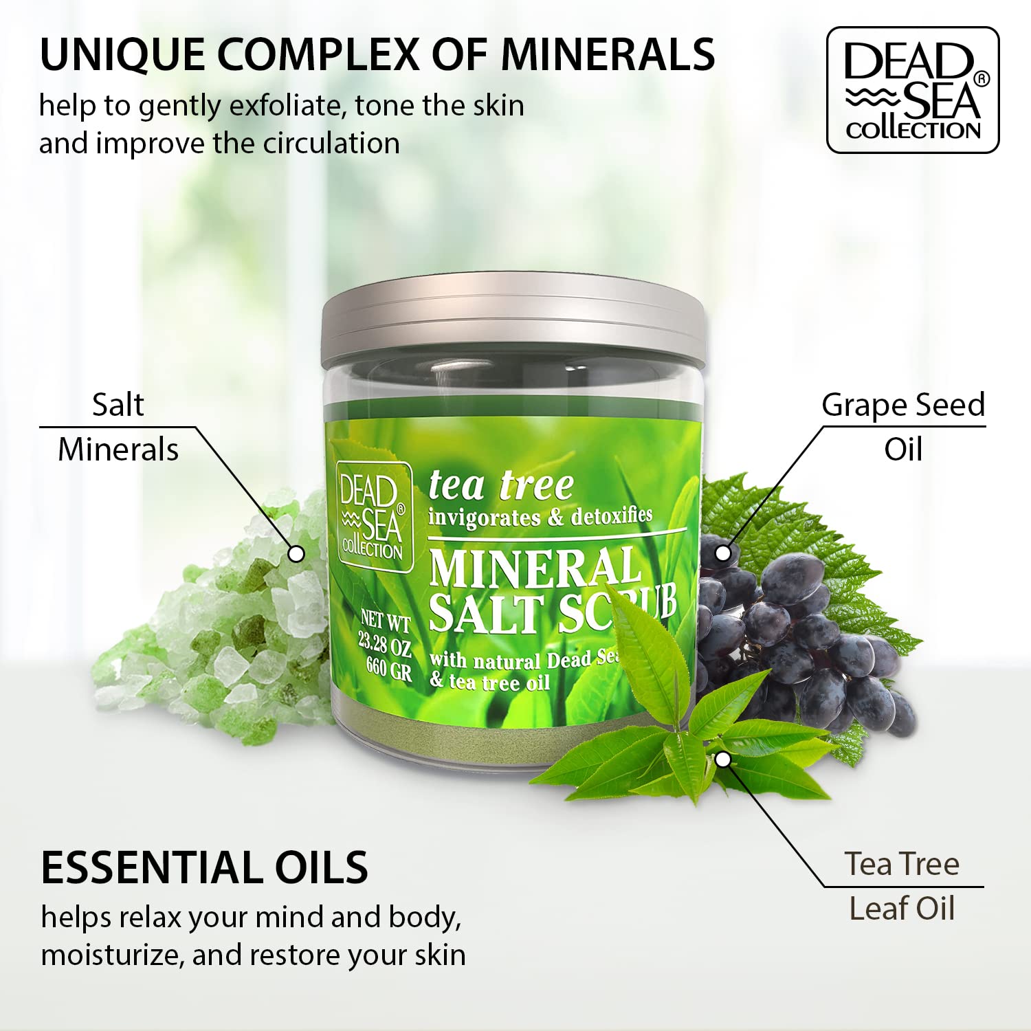Dead Sea Collection Tea Tree Salt Scrub – Exfoliating Body Scrub for Women – Moisturizing and Nourishing Skin – with Pure Oils and Dead Sea Minerals (23.28 Oz)