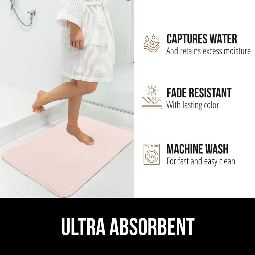 GORILLA GRIP Memory Foam Bath Mat, Soft Absorbent Velvet Bathroom Mats, Durable Dots on Underside, Machine Washable Bathmat, Carpet Rug Room Decor for Shower Tub Floor RV, 24x17 Rugs, Pink