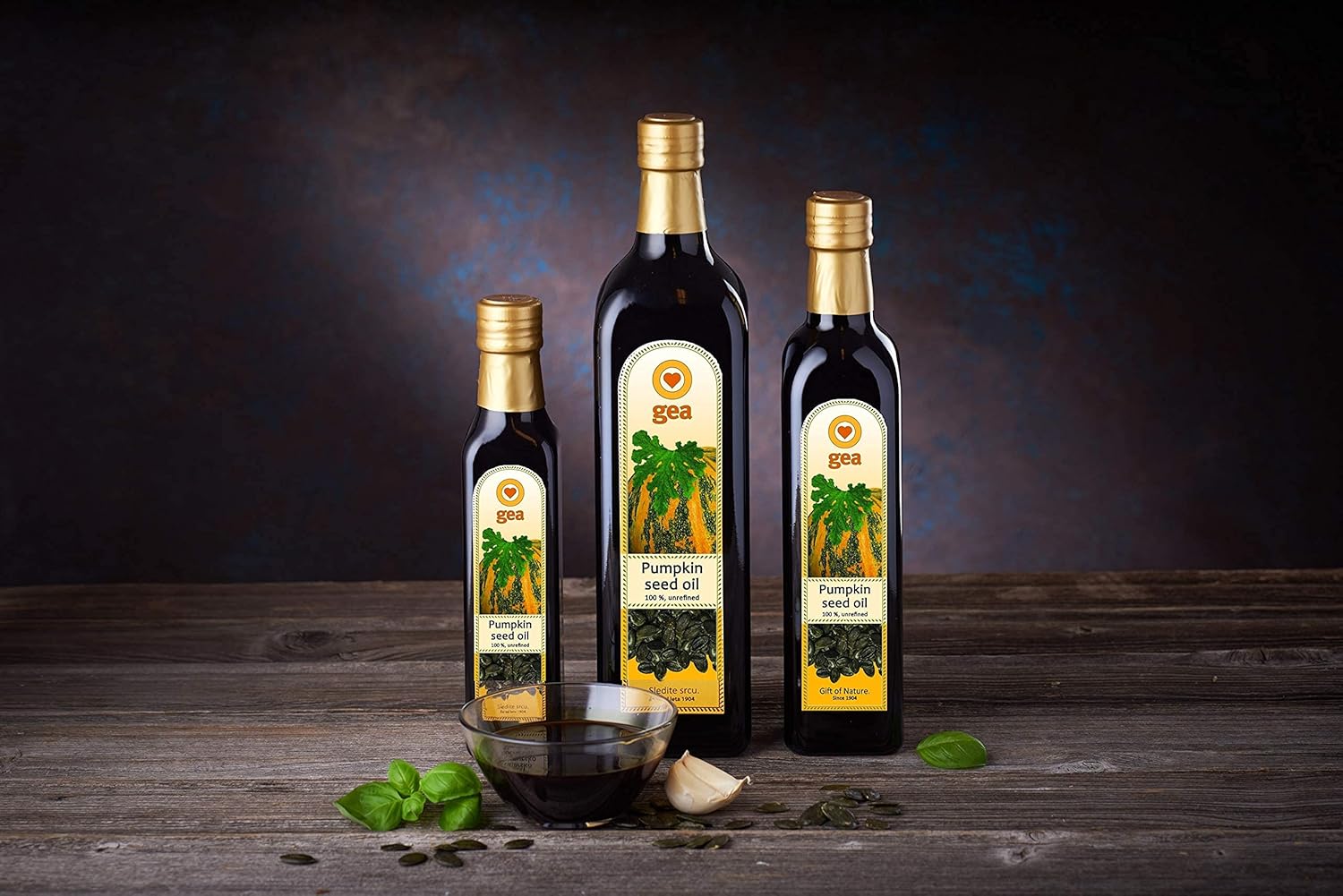 - DELICIOUS TASTE : GEA's pumpkin seeds oil have a mouth-watering nutty taste which can be used in your salads, pasta, soup or preparing other mineral rich foods. Moreover, being stable enough, it can easily be stored anywhere outside the fridge