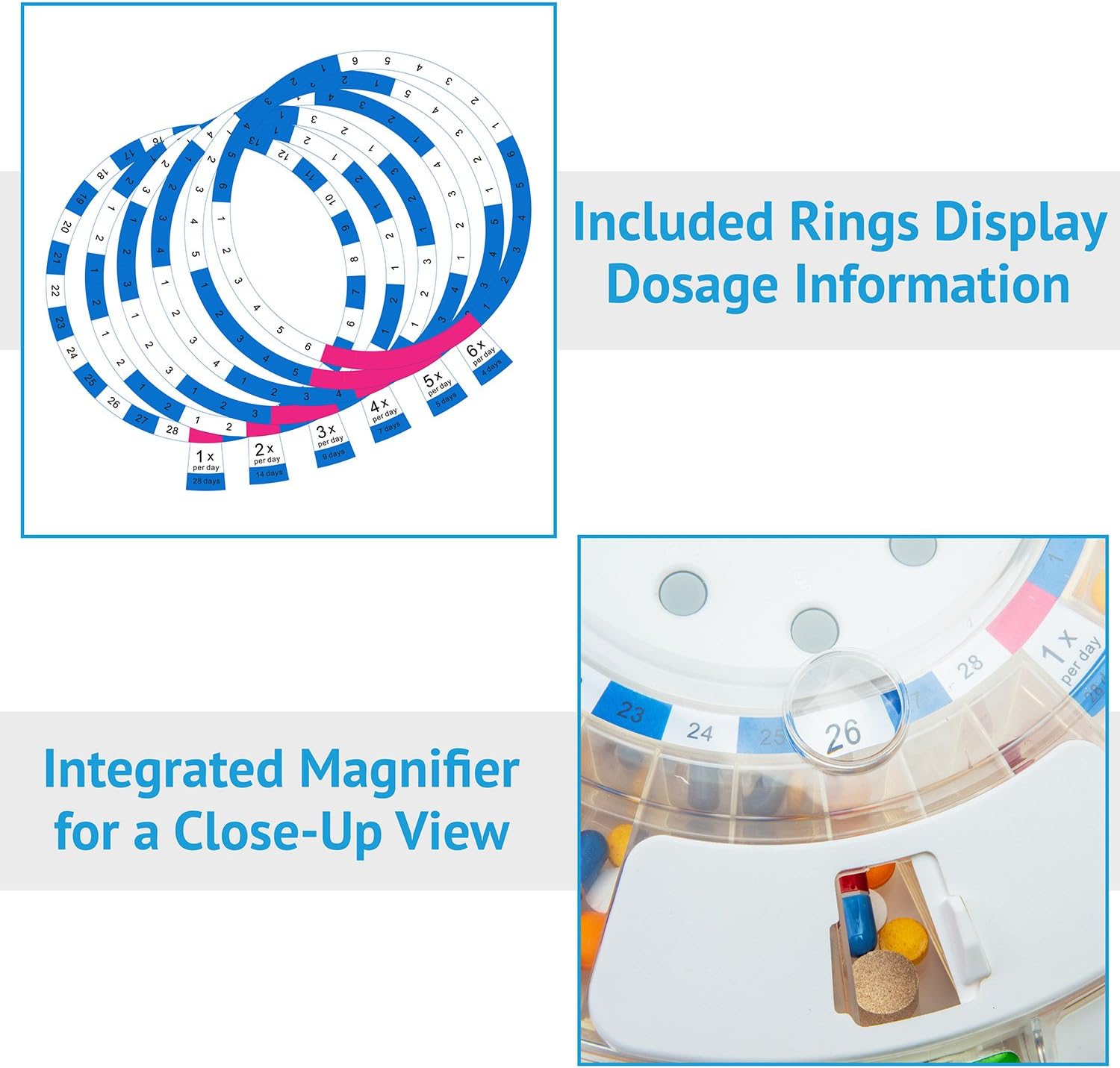 Live Fine Automatic Pill Dispenser with 28-Day Electronic Medication Organizer, 6 Dosage Templates, Easy-Read LCD Display, Sound & Light Alerts & Key for Prescriptions, Vitamins, Supplements & More