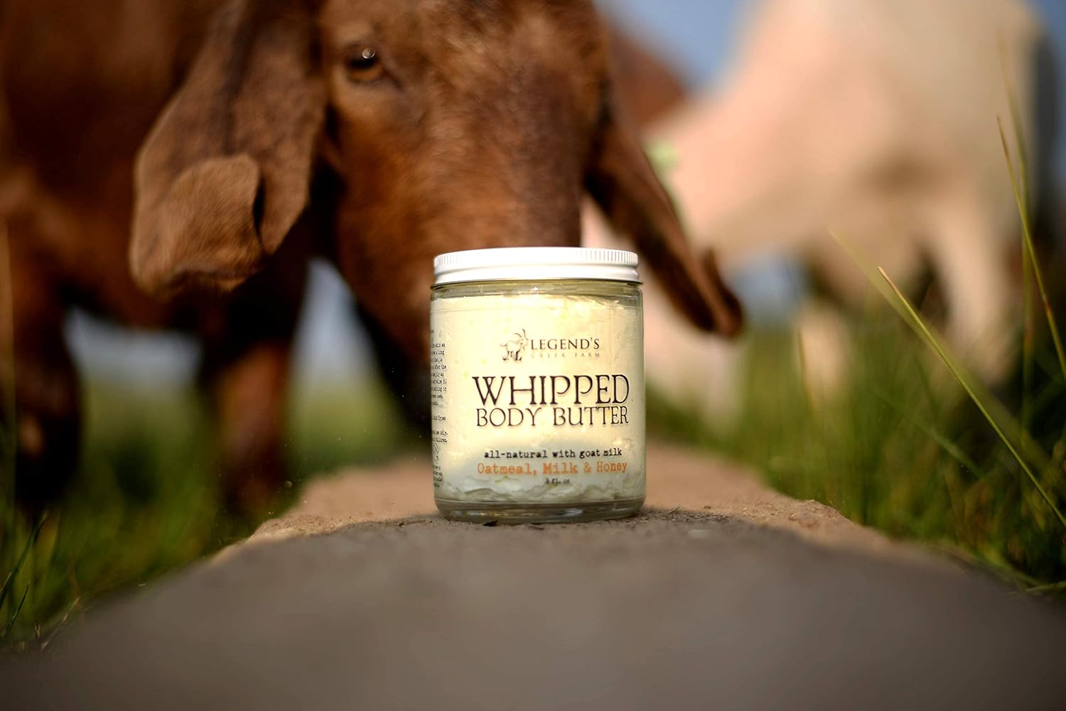 Legend's Creek Farm, Whipped Goat Milk Body Butter, Hydrating Moisturizer with Organic Shea Butter & Grape Seed Oil, Purifying & Toning, Handmade in USA, 8 Oz Jar (Oatmeal, Milk & Honey B.B.)
