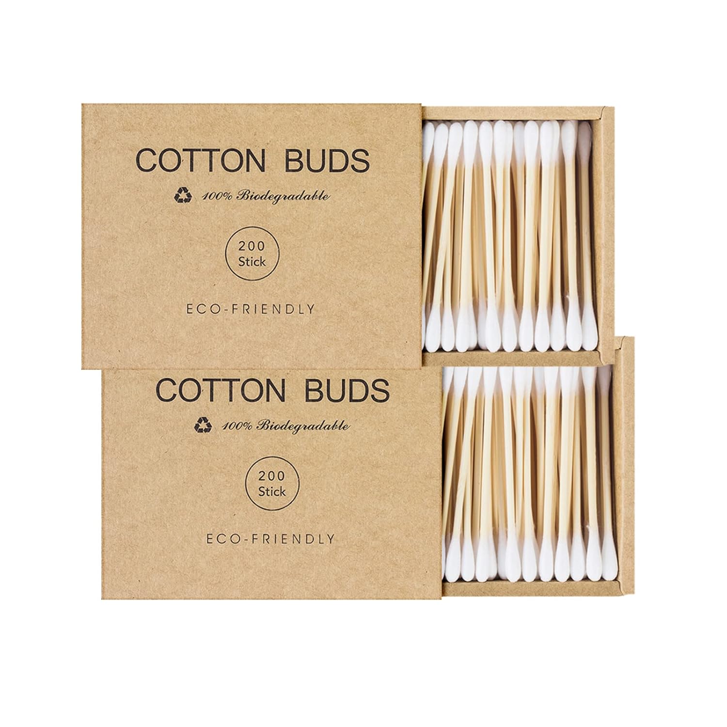 - ☞【Quality】 These natural q tips original cotton swabs are made of 100% pure cotton and bamboo while carefully packed in two small boxes which are made of craft paper, thus they are odorless, 100% eco friendly and sustainable q tips. The dual cotton tips for ears are soft and compact and sturdily fixed to a wooden stick that is strong enough to hold and wipe.
